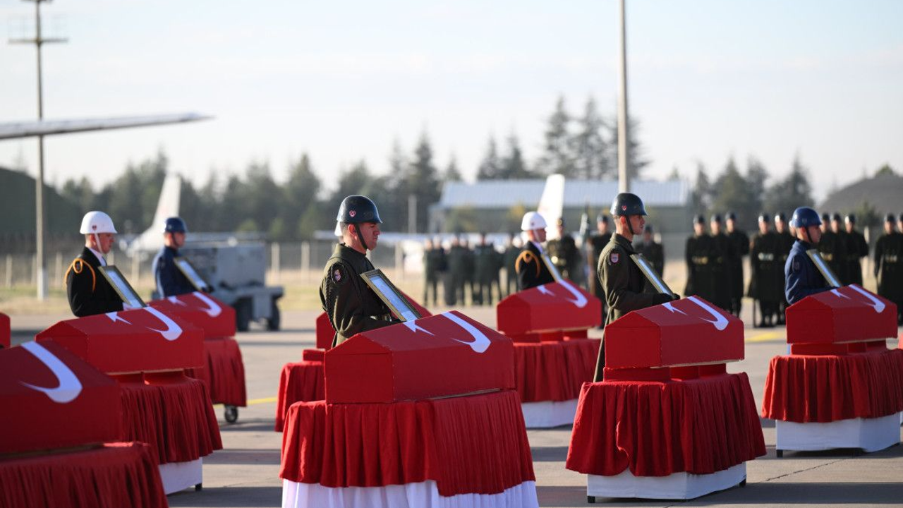 Şehit askerlerin cenazeleri, Ankara Adli Tıp Kurumu’nda yapılan inceleme ve kimlik tespit işlemlerinin ardından Mürted Hava Üssü’nde düzenlenecek olan askeri tören alanına götürülmek üzere kurumdan çıkarıldı.