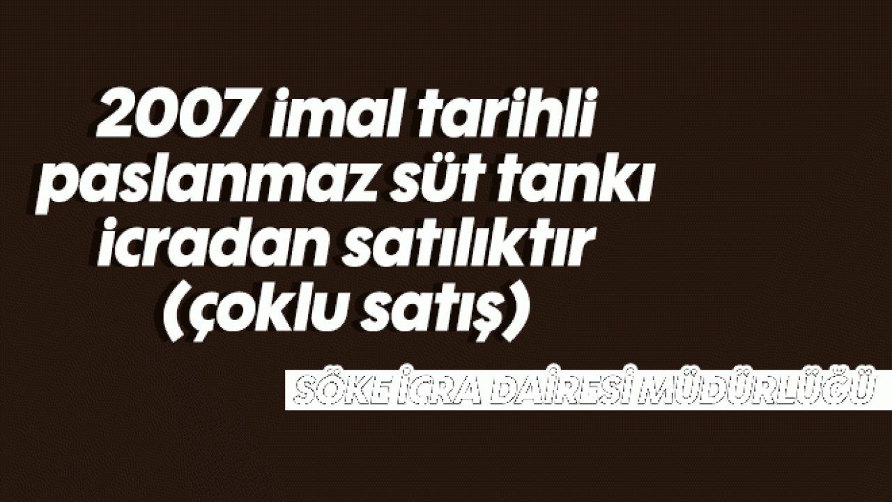 Basın İlan Kurumu internet sitesi ilan.gov.tr'de yer alan ilana göre 2007 imal tarihli paslanmaz süt tankı icradan satılıktır (çoklu satış) ilanına çıktı.