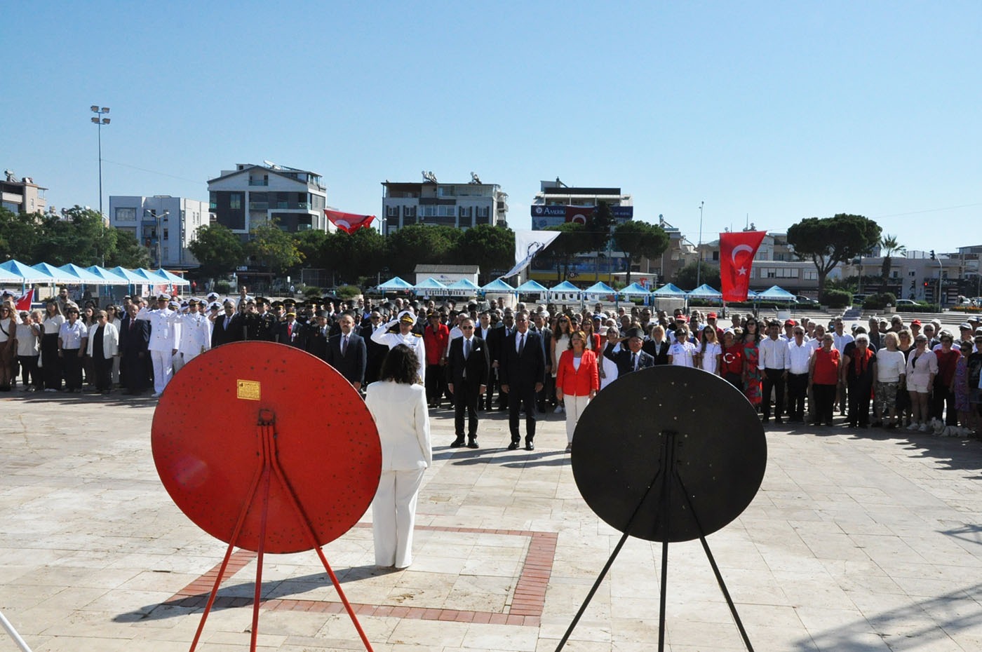 Didim Kent Meydanında gerçekleştirilen törene Didim Kaymakamı Mesut Çoban, CHP Aydın Milletvekili Hüseyin Yıldız, Didim Garnizon Komutanı Albay Erkut Arslan, Didim Belediye Başkanı Hatice Gençay, Didim Cumhuriyet Başsavcısı Anıl Altay, Kurum Müdürleri, Daire amirleri, Siyasi parti temsilcileri, Oda ve Meslek örgütü temsilcileri, askeri erkan ve vatandaşlar katıldı.