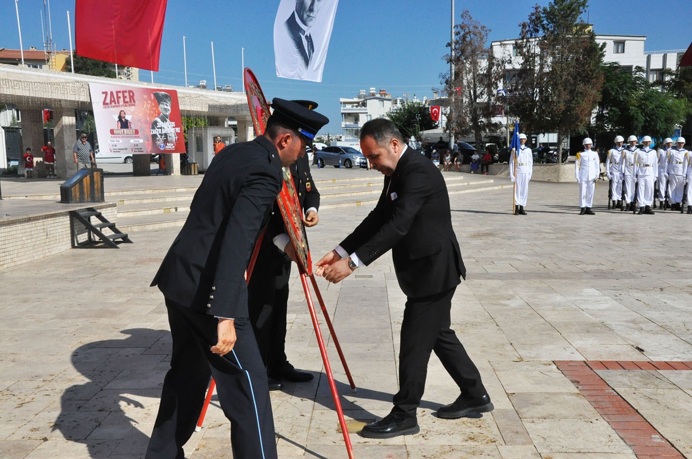 İlçe protokolünün çelenk koymasının, ardından günün anlam ve önemine ilişkin konuşmayı Didim Garnizon Komutanı Albay Erkut Arslan yaptı. Arslan konuşmasında 30 Ağustosun milletimizin bağımsızlık ve özgürlük mücadelesinin en önemli dönüm noktalarından birisi olduğunu ifade ederek "Türk Milletinin yokluklar içinde canı pahasına verdiği mücadele ile bağımsızlığından asla taviz vermeyeceğini tüm dünyaya ilan etmiştir." ifadelerini kullandı. Arslan Zaferinin 103. yılının gururunu yaşadıklarını belirterek bu zaferin sadece askeri zafer olmadığını Türk milletinin birlik ve beraberliğinin zaferi olduğunu kaydetti.
