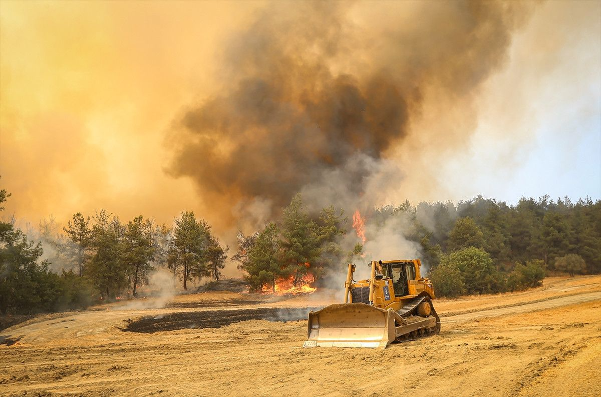 Yangının ilerlemesini durdurmak için bölgedeki bazı ağaçlar, orman işçileri tarafından kesiliyor ve belirli noktalarda arazözler bekletiliyor.