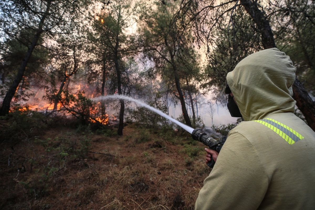 Helikopter ve uçaklarla havadan müdahalenin yanı sıra karadan ekiplerin cansiperane çalıştığı bölgede görevli jandarma ve komandolar ile çok sayıda vatandaş, alevlere elleriyle toprak atarak söndürme çalışmalarına destek veriyor.