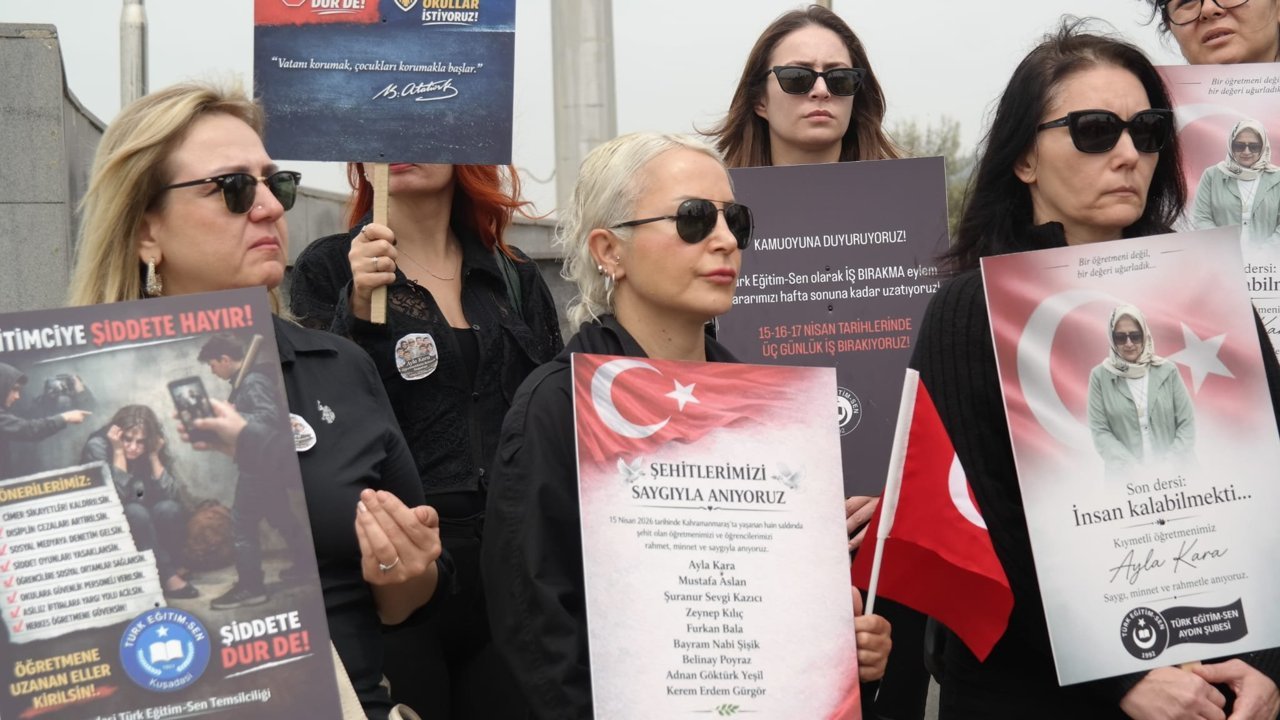 Türk Eğitim-SEN Kuşadası temsilciliği, Kahramanmaraş ve Şanlıurfa’nın Siverek ilçesinde meydana gelen olaylara tepki göstermek amacı ile Kuşadası'nda basın açıklaması düzenledi. Atatürk Anıtı Meydanı'nda bir araya gelen sendika üyelerine vatandaşlar da sloganlar ile destek verirken, açıklamada, ''Kahramanmaraş ve Şanlıurfa Siverek'te öğretmenlerimize öğrencilerimize ve genelde tüm toplumunuza karşı yapılan şiddet olaylarını en ağır şekilde kınıyoruz.'' mesajı verildi. Okunan dualar eşliğinde başlayan basın açıklaması sonrası, öğretmenler, vefat eden öğretmen ve öğrencilerin anısına Atatürk Anıtı'na karanfil bıraktı.