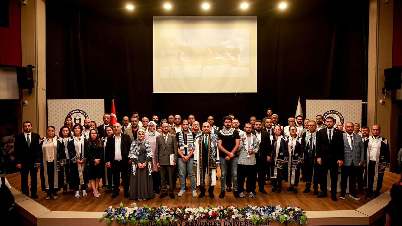 “İlk Ders: Filistin” programı, Atatürk Kongre Merkezi Aydın Bey Salonu’nda gerçekleşti. Programa, Rektör Prof. Dr. Bülent Kent’in yanı sıra Rektör Yardımcısı Prof. Dr. Cengiz Özarslan, Genel Sekreter V. Prof. Dr. Bertan Akyol, kurum il müdürleri, sivil toplum kuruluşu temsilcileri, basın mensupları, akademisyenler ve öğrenciler katıldı.