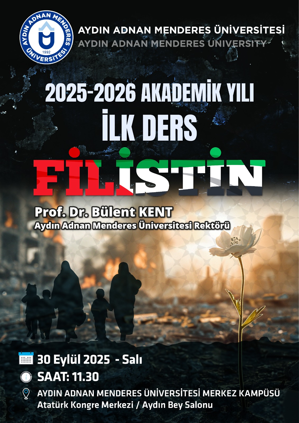 ADÜ Rektörü Prof. Dr. Bülent Kent, açılış törenine tüm akademisyenleri, öğrencileri ve vatandaşları davet etti. Rektör Kent, “Üniversitemiz 2025-2026 Akademik Yılı İlk Dersi, ‘İlk Ders: Filistin’ sunumu ile gerçekleşecektir. Programı onurlandırmanızı dileriz” ifadelerini kullandı.