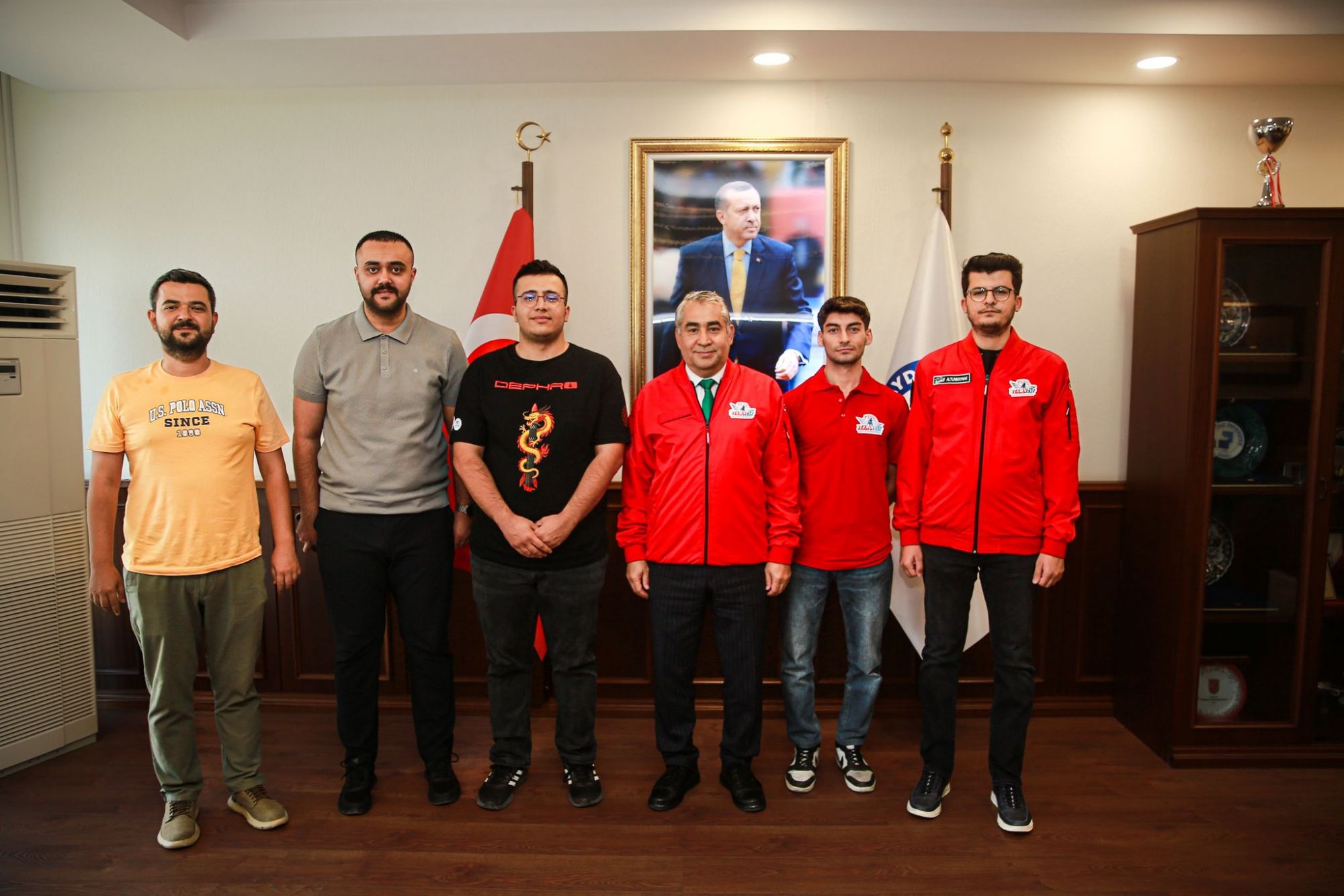 Bu önemli başarının ardından DEPHRO Roket Takımı, ADÜ Rektörü Prof. Dr. Bülent Kent’i makamında ziyaret etti. Ziyarette, Aydın Sanayi ve Teknoloji İl Müdürü Fatih Ulutaş, T3 Vakfı Aydın İl Sorumlusu Mesut Altunkaynak, ADÜ Makine Mühendisliği Bölümü Dr. Öğr. Üyesi Hilmi Saygın Sucuoğlu, DEPHRO Roket Takımı Kaptanı Serhat Barış Çiftci ve Mekanik Ekip Üyesi Emre Salazer de hazır bulundu.