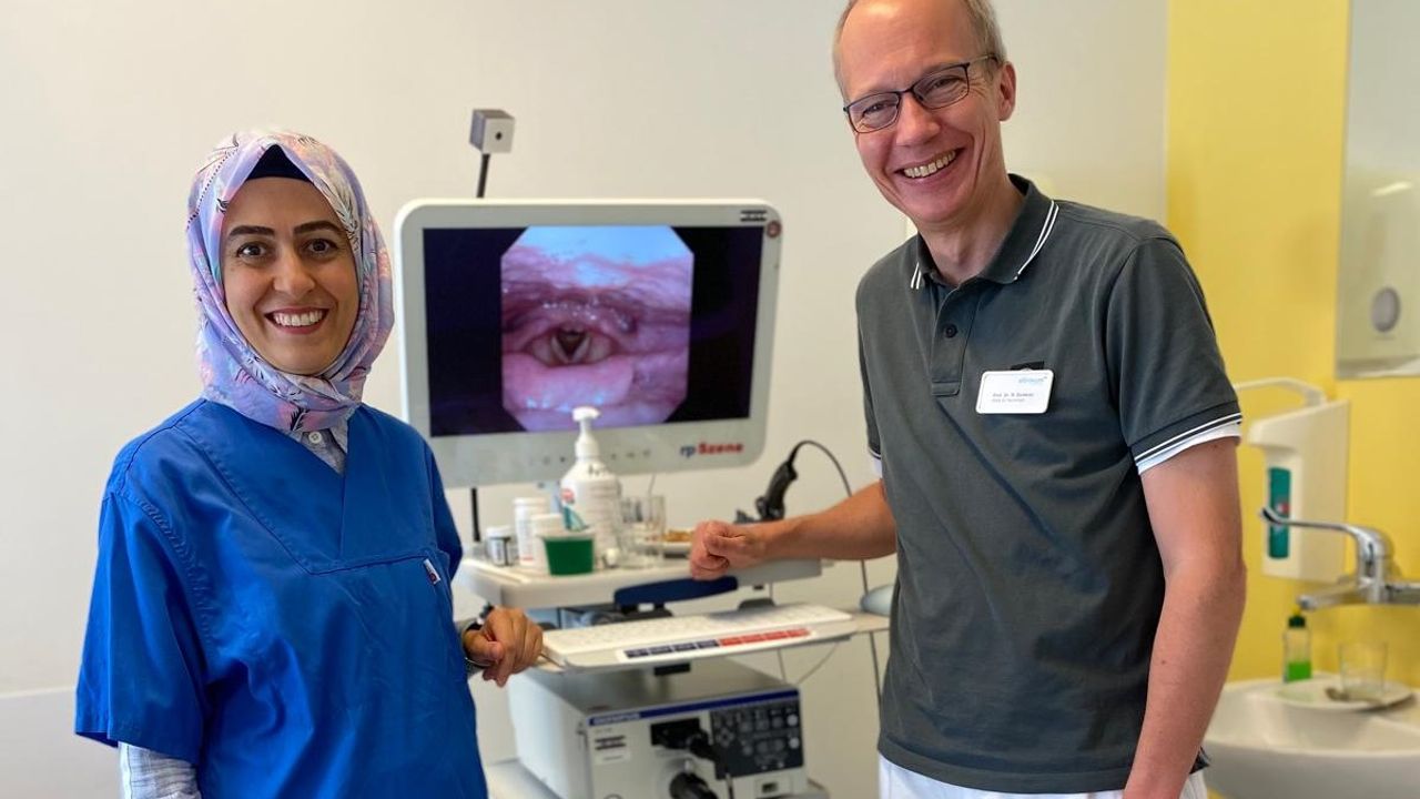 Avrupa Yutma Bozuklukları Derneği Başkanı Prof. Dr. Rainer Dziewas liderliğinde yürütülen program kapsamında, yutma bozukluklarının tanı ve tedavisinde uluslararası alanda kabul gören yöntemler detaylı biçimde ele alındı. Eğitimde, yutma bozukluklarının değerlendirilmesinde “altın standart” olarak bilinen Fiberoptik Endoskopik Yutma Değerlendirmesi (FEES) ve Videofloroskopik Yutma Çalışması (VFSS) uygulamaları ile raporlama süreçleri yakından incelendi. Ayrıca yoğun bakım, inme ve Parkinson hastalarının tedavi süreçlerindeki yutma rehabilitasyonu uygulamaları gözlemlendi.