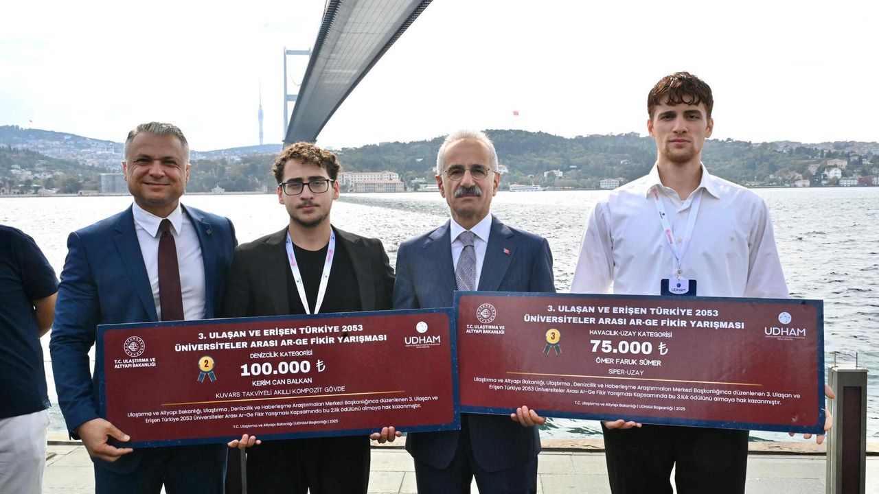 Ulaştırma ve Altyapı Bakanlığı UDHAM Başkanlığı tarafından düzenlenen “Ulaşan ve Erişen Türkiye 2053 Üniversiteler Arası Ar-Ge Fikir Yarışması” ödül lansmanı İstanbul’da gerçekleştirildi. Toplamda 4 milyon 922 bin 800 TL tutarında ödülün dağıtıldığı yarışmada, Adnan Menderes Üniversitesi öğrencileri de başarılarıyla öne çıktı. Programa, Ulaştırma ve Altyapı Bakanı Abdulkadir Uraloğlu, UDHAM Başkanı Selami Yazıcı, üniversite rektörleri ve çok sayıda öğrenci katıldı.