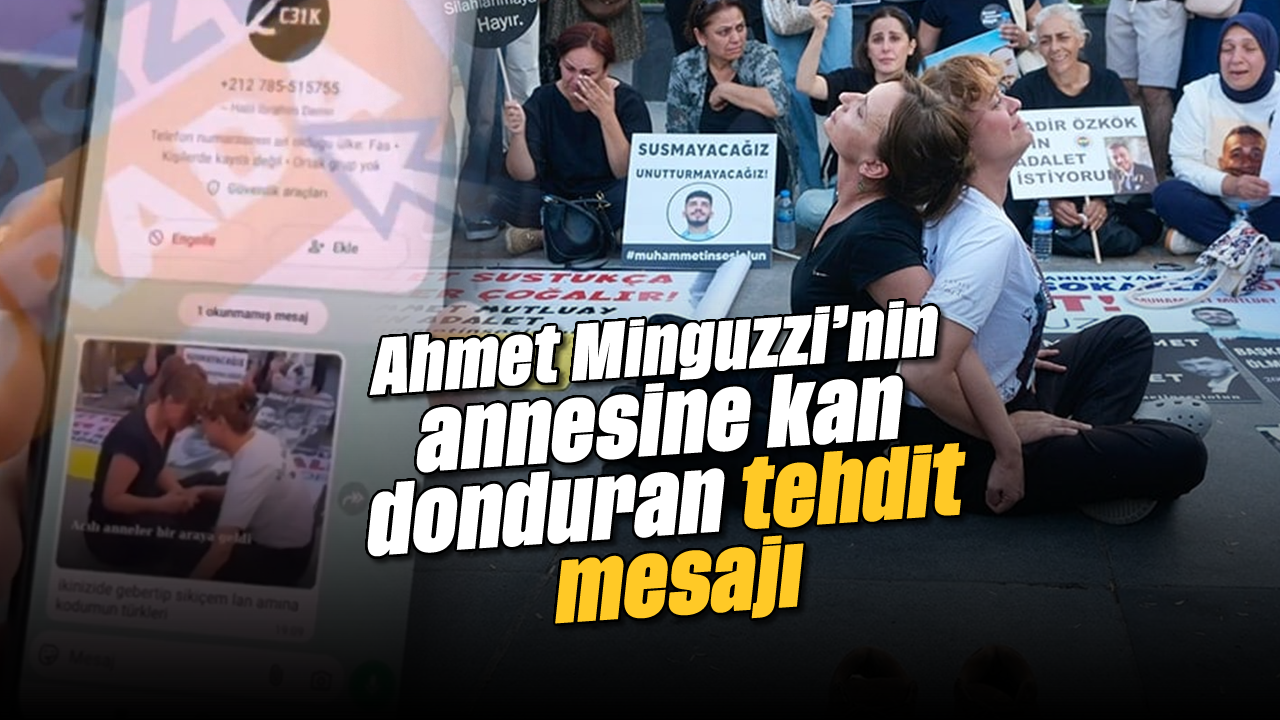 Yasemin Minguzzi, oturma eylemi sırasında kendisine gönderilen tehdit mesajını da kamuoyuyla paylaştı. Mesajda, "Şikayetini geri çekmezsen seni de o veledin yanına gömeriz." ifadeleri yer aldığı görüldü.