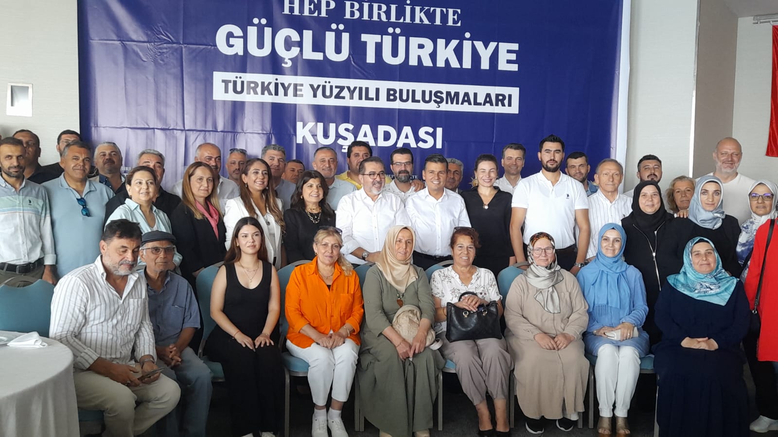 Adalet ve Kalkınma Partisi (AK Parti) Kuşadası İlçe Başkanı Fatih Sarıgöz'ün açılış konuşması ile başlayan toplantıda, Sarıgöz, Cumhuriyet Halk Partisi (CHP) saflarından ayrılarak AK Parti'ye katılan Aydın Büyükşehir Belediye Başkanı Özlem Çerçioğlu'na 'Hoş geldiniz' diyerek başladığı sözlerine, ''Aydın Büyükşehir Belediye Başkanımız partimize katıldı. Bu durum, bu çınarın altında herkese yer olduğunun en büyük göstergesidir. Size, gönlümüz de kapımız da her zaman açık. İnşallah bu salondaki kadrolarla beraber, önümüzdeki 2027 ya da 2028 genel seçimlerinde Aydın AK Parti olarak 5 milletvekili çıkaracağımıza yürekten ve gönülden inanıyorum. Önce, genel seçimlerde Cumhurbaşkanımızı tekrar Cumhurbaşkanımız olarak seçtikten ve Aydın'da 5 vekil çıkardıktan sonra önümüzdeki yerel seçimlerde de hem Aydın Büyükşehir Belediyesi'ni hem de Kuşadası Belediyesi'ni kazanmak için var gücümüzle çalışarak hep beraber kazanacağımıza inanıyorum'' şeklinde devam etti.