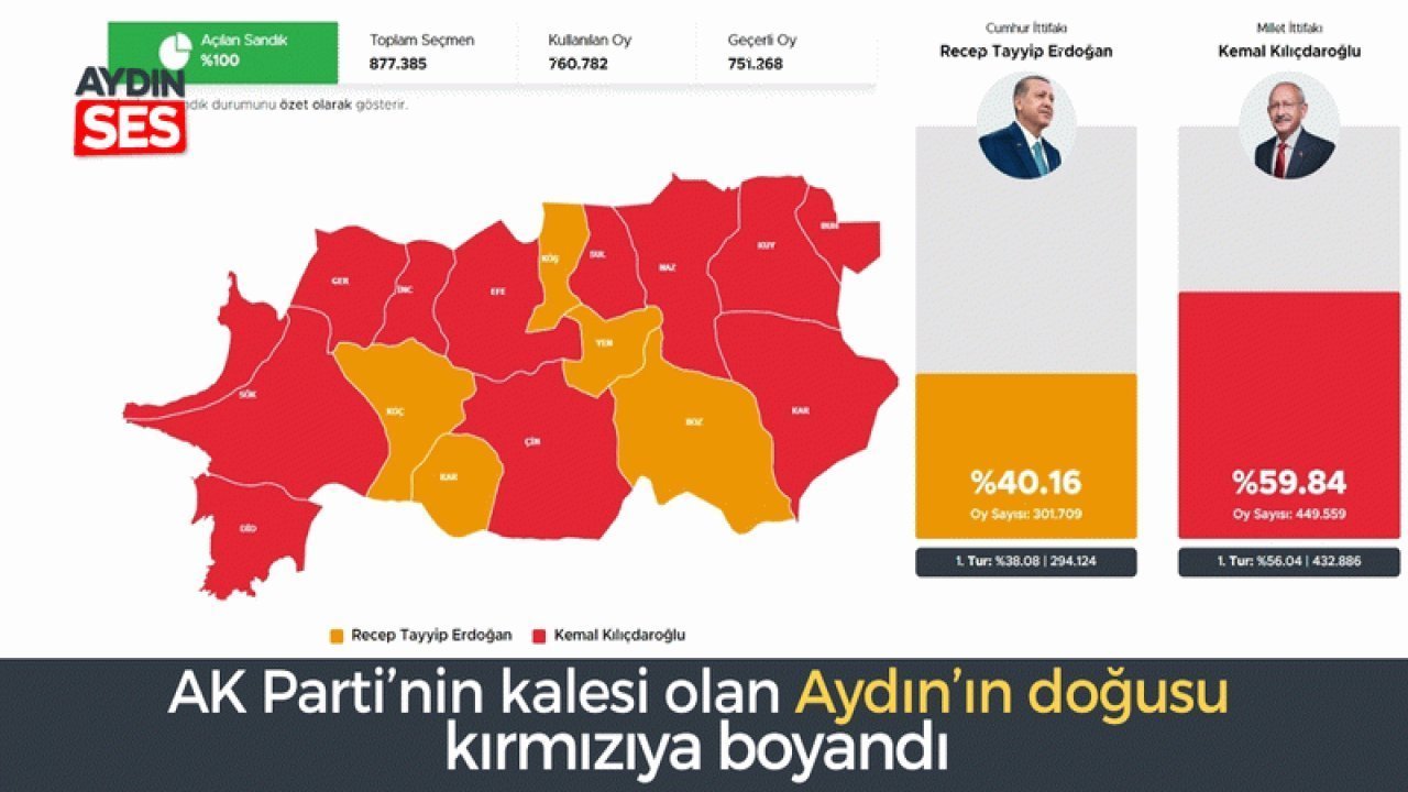 AK Parti’nin en büyük kalelerinin bulunduğu Aydın’ın doğu kesimi kırmızıya boyandı. 28 Mayıs seçimlerinde Buharkent, Kuyucak, Nazilli ve Karacasu sandıkta ‘Kemal Kılıçdaroğlu’ dedi.