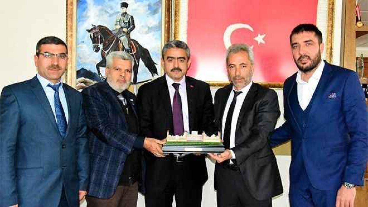 Karşılıklı yapılan sohbetin sonunda ziyarete gelen Vakıf üyeleri Belediye Başkanı Haluk Alıcık’a Recistan Meydanı maketini hediye etti, hatıra fotoğrafı çekildiler.