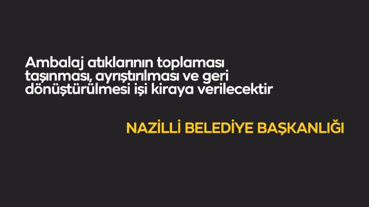 Basın İlan Kurumu internet sitesi ilan.gov.tr'de yer alan ilana göre Ambalaj atıklarının toplaması, taşınması, ayrıştırılması ve geri dönüştürülmesi işi kiraya verilecektirilanına çıktı.