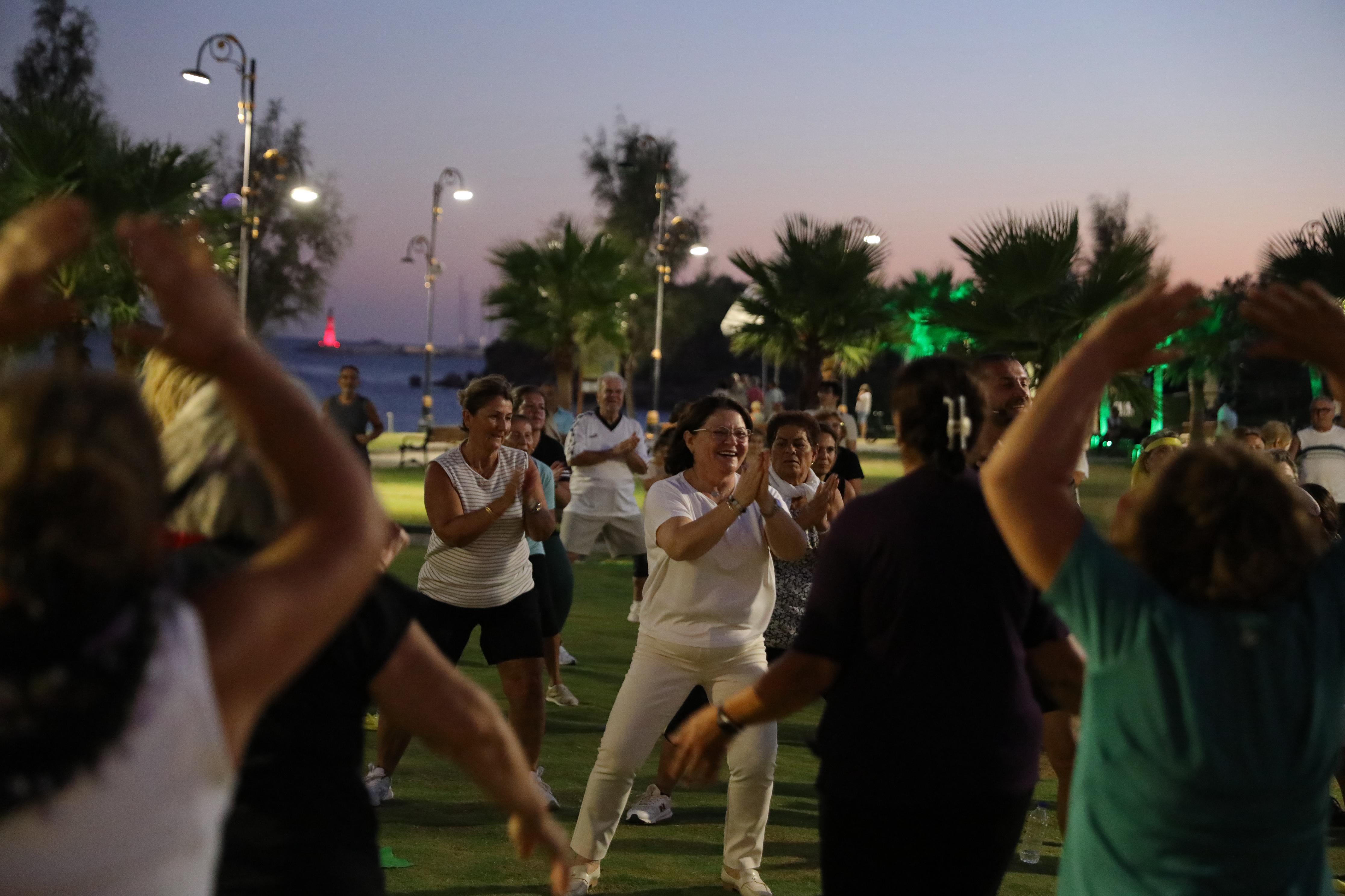 Didim Belediye Başkanı Hatice Gençay da etkinlik boyunca vatandaşlarla birlikte spor yaparak hem örnek oldu hem de sağlıklı yaşamın önemine dikkat çekti.