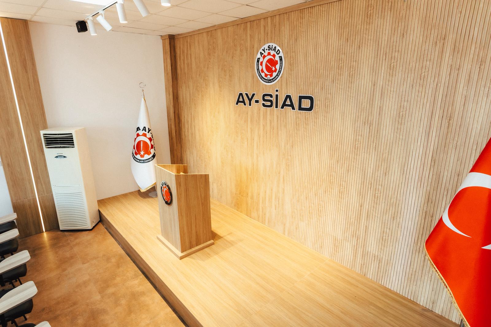Efeler ilçe merkezinde yaklaşık 10 yıldır faaliyet gösteren AY-SİAD, artan üye sayısı ve faaliyetleri doğrultusunda daha kurumsal bir yapıya sahip olmak amacıyla ASTİS Gıda Çarşısı mevkisinde, 2 katlı yeni bir hizmet binasına taşındı. 250 metrekarelik alana sahip yeni binanın alt katı toplantı ve konferans salonu, üst katı ise başkanlık ve yönetim kurulu toplantı salonu olarak düzenlendi.