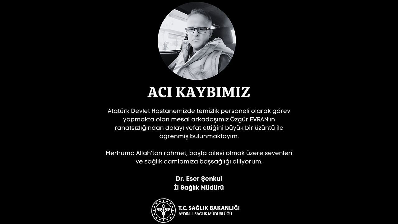 Acı kaybın ardından Aydın İl Sağlık Müdürü Dr. Eser Şenkul bir taziye mesajı yayımladı. Şenkul mesajında, Atatürk Devlet Hastanesi’nde temizlik personeli olarak çalışan mesai arkadaşları Özgür Evran’ın vefatını derin bir üzüntüyle öğrendiğini belirterek, “Merhuma Allah’tan rahmet; ailesine, yakınlarına ve sağlık camiamıza başsağlığı diliyorum” ifadelerini kullandı.
