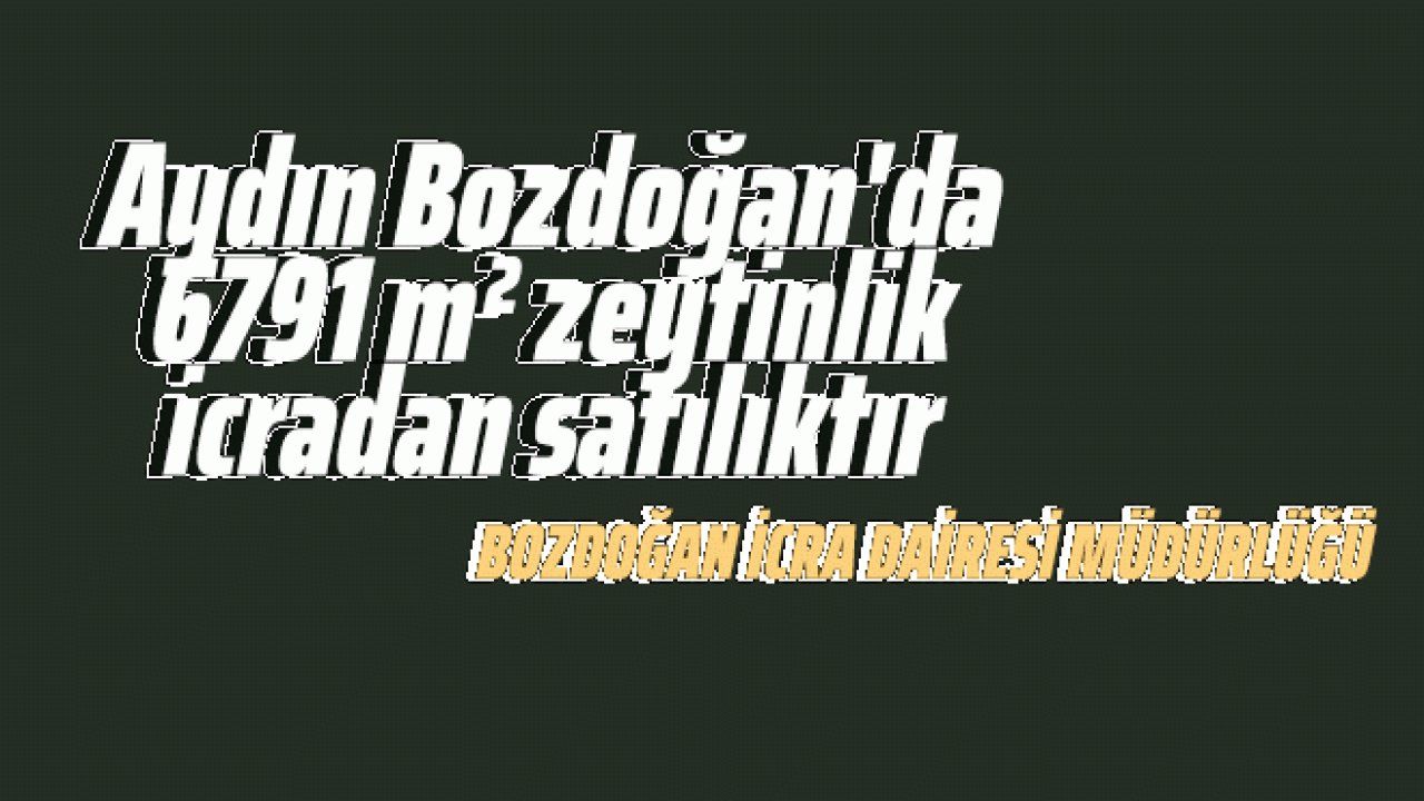 Basın İlan Kurumu internet sitesi ilan.gov.tr'de yer alan ilana göre Aydın Bozdoğan'da 6791 m² zeytinlik icradan satılıktır ilanına çıktı.