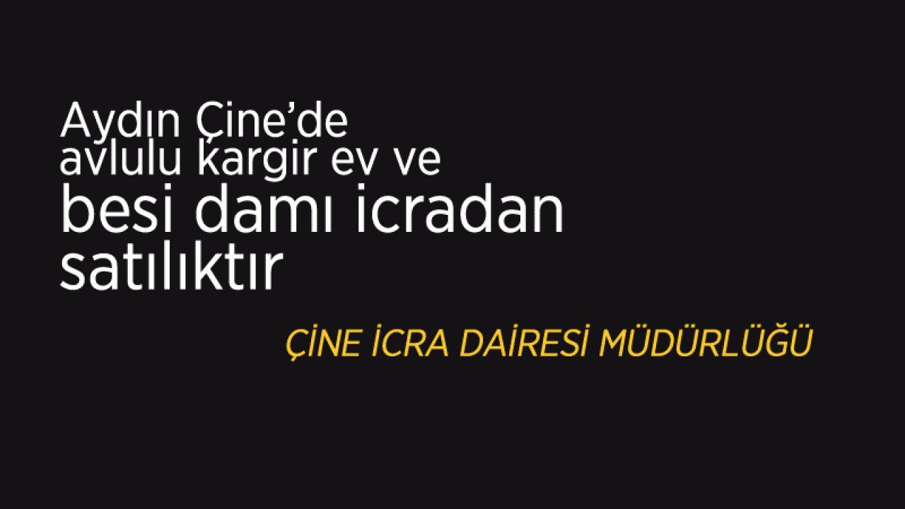 Basın İlan Kurumu internet sitesi ilan.gov.tr'de yer alan ilana göre Aydın Çine'de avlulu kargir ev ve besi damı icradan satılıktır ilanına çıktı.