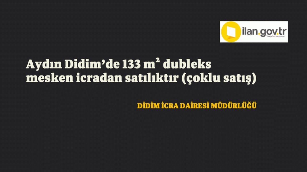 ilan.gov.tr'nin internet sitesinde yer alan ilana göre Aydın Didim'de 133 m² dubleks mesken icradan satılıktır (çoklu satış)