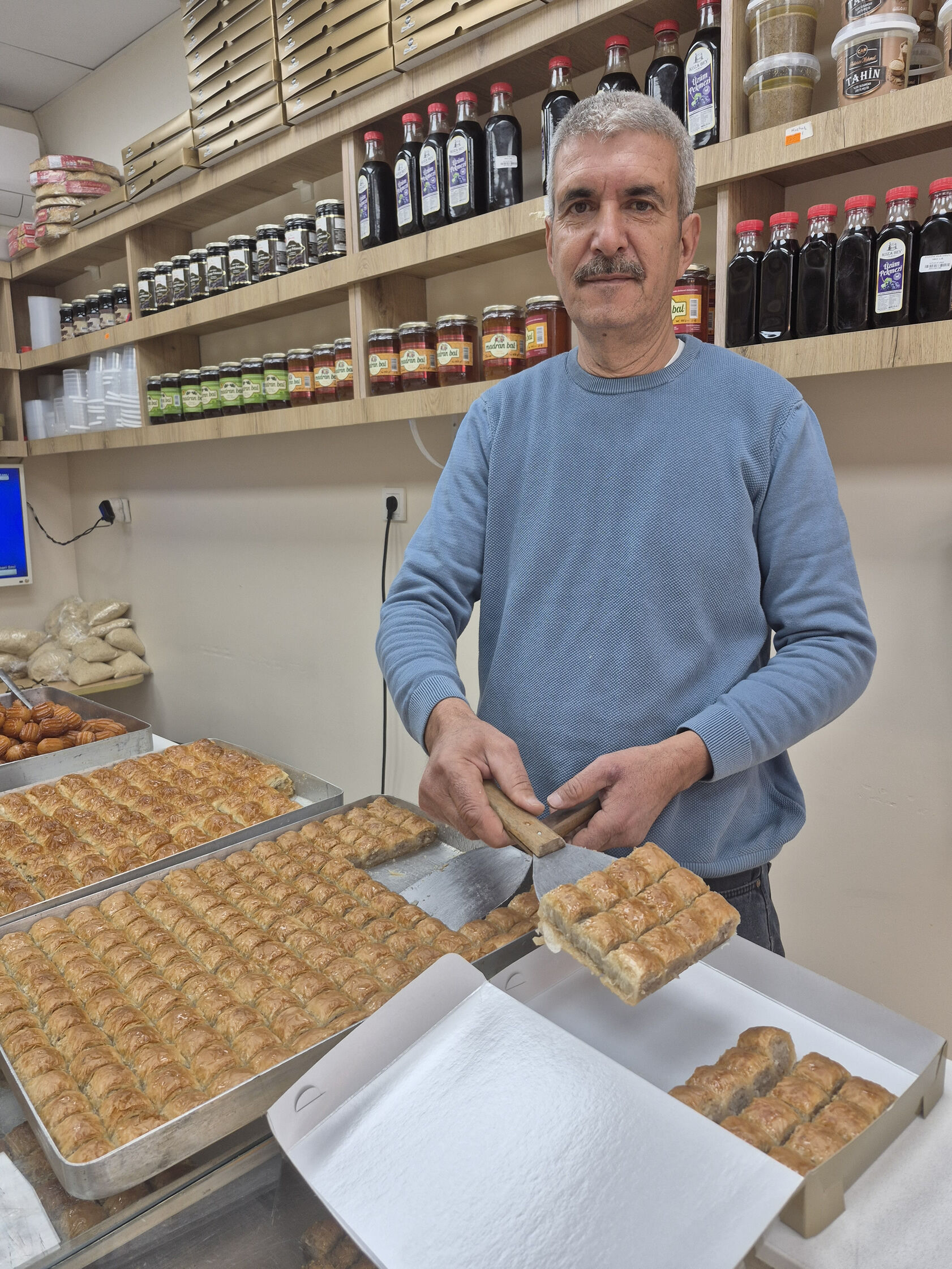 Efeler ilçesindeki Yağcılar İçi’nde hizmet veren ‘Can Helva’ adlı işyerinin sahibi Mehmet Can, Ramazan ayındaki tatlı satışlarıyla ilgili açıklamalarda bulundu. Ramazan ayının bereketli bir ay olduğunu vurgulayan Can, “Ramazan ayındaki satışlarımız şu anda yüzde 50 oranında arttı. Esnaf olarak bu satışlardan oldukça mutluyuz. En çok talep gören ürünlerimiz ise baklava, helva, tulumba tatlısı, tahin oldu. Tüm Aydınlıları işletmemize bekliyoruz.” ifadelerini kullandı.
