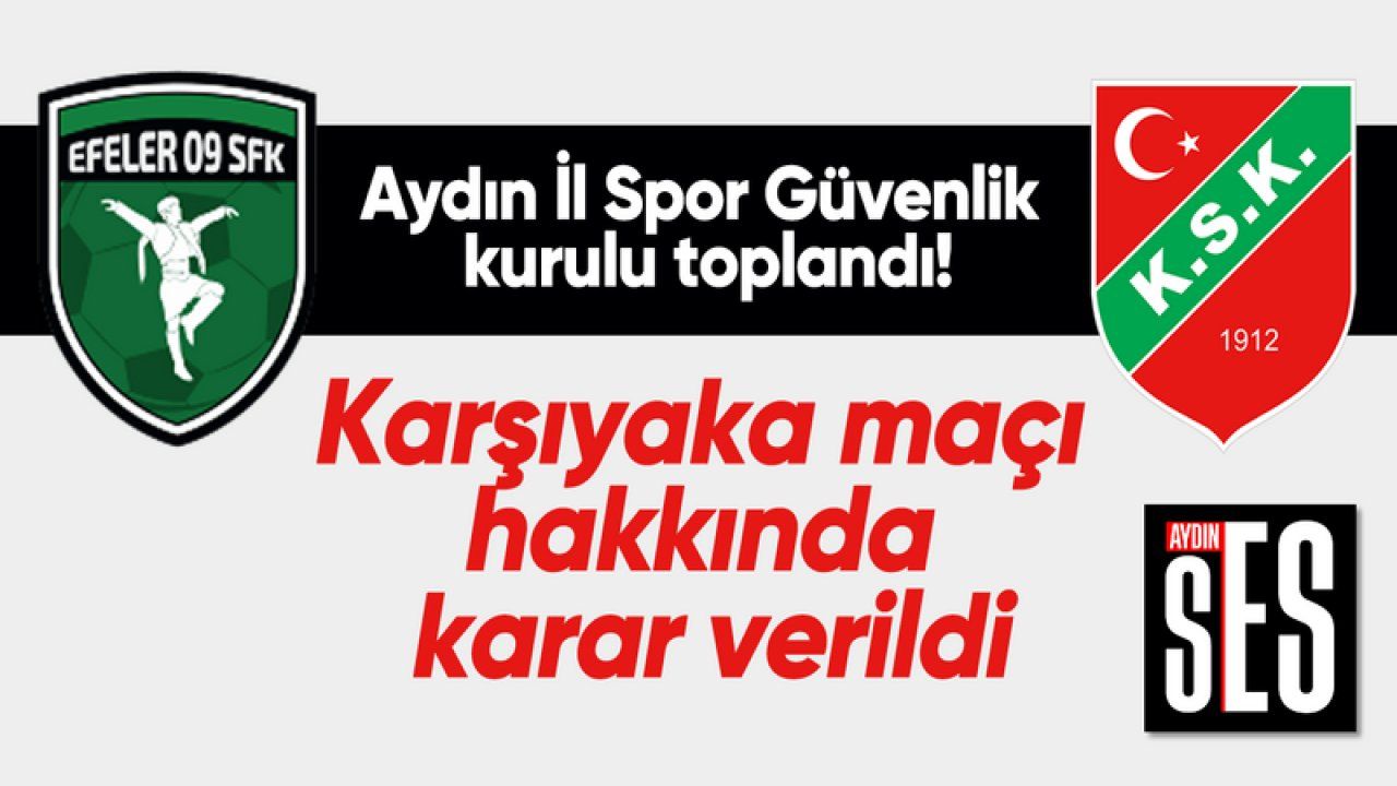 Aydın İl Spor Güvenlik Kurulu, kulüp temsilcileri ile yaptığı görüşmeler sonrası Efeler 09 SFK ile Karşıyaka arasında oynanacak karşılaşmaya misafir takım seyircilerine bilet satılmaması kararı aldı.