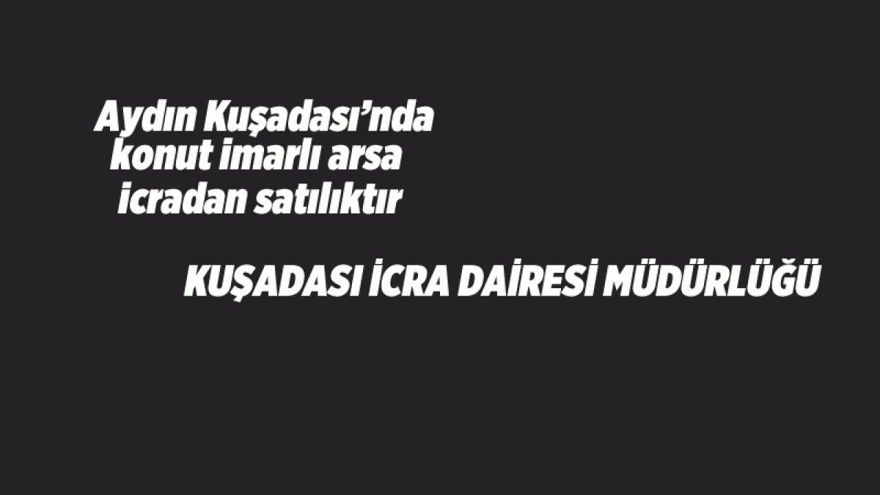 Basın İlan Kurumu internet sitesi ilan.gov.tr'de yer alan ilana göre Aydın Kuşadası'nda konut imarlı arsa icradan satılıktır ilanına çıktı.