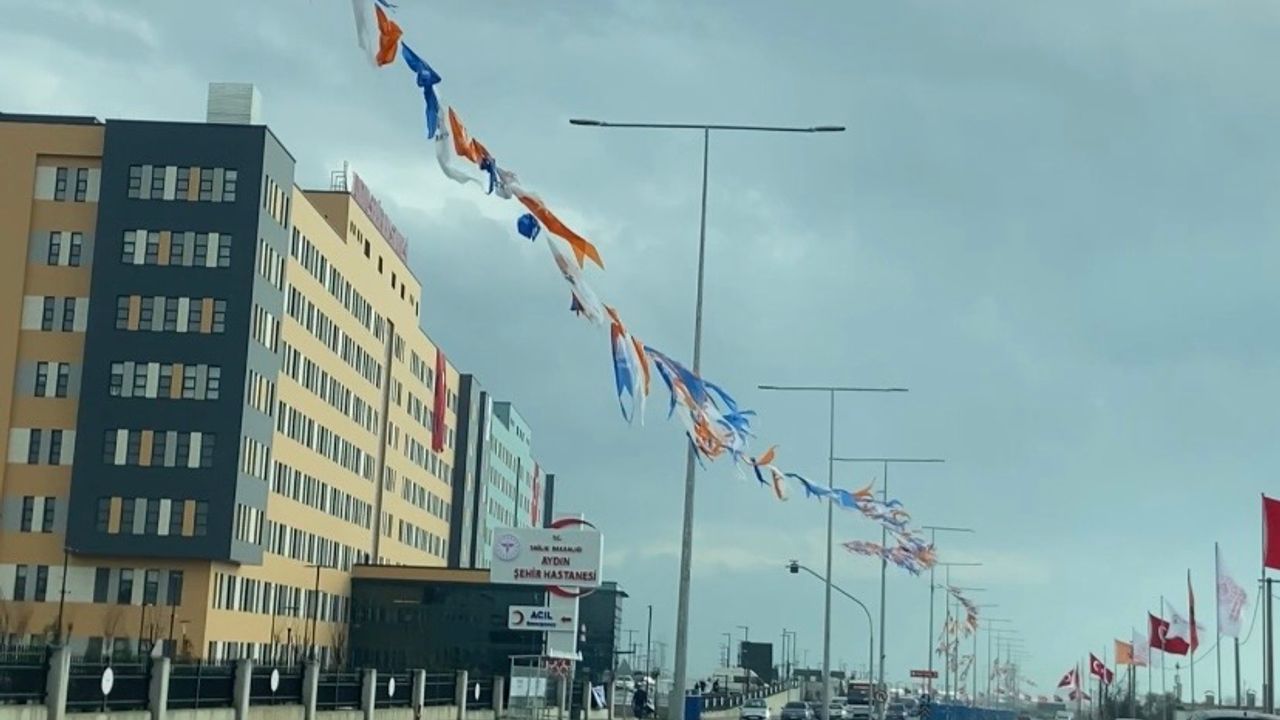 Aydın Şehir Hastanesi’ne giden ana arterler başta olmak üzere hastane çevresi Türk bayraklarıyla süslendi. Ana arter yollarda Türk bayrağı yanı sıra ak parti bayrakları da yerini aldı. Görsel düzenlemelerle adeta gelin gibi hazırlanan hastane, açılış günü için son halini aldı.