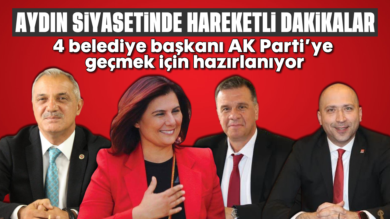 Aydın siyaset kulislerinde bugünlerde hareketli saatler yaşanıyor. Edinilen iddialara göre, Söke Belediye Başkanı Mustafa İberya Arıkan, Sultanhisar Belediye Başkanı Osman Yıldırımkaya ve Yenipazar Belediye Başkanı Malik Ercan, Perşembe günü AK Parti’ye geçecek. Katılım töreninin, AK Parti’nin 24’üncü kuruluş yıl dönümü programında gerçekleştirileceği konuşuluyor.