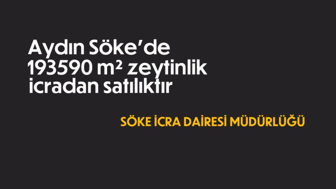 Basın İlan Kurumu internet sitesi ilan.gov.tr'de yer alan ilana göre Aydın Söke'de 193590 m² zeytinlik icradan satılıktır ilanına çıktı.