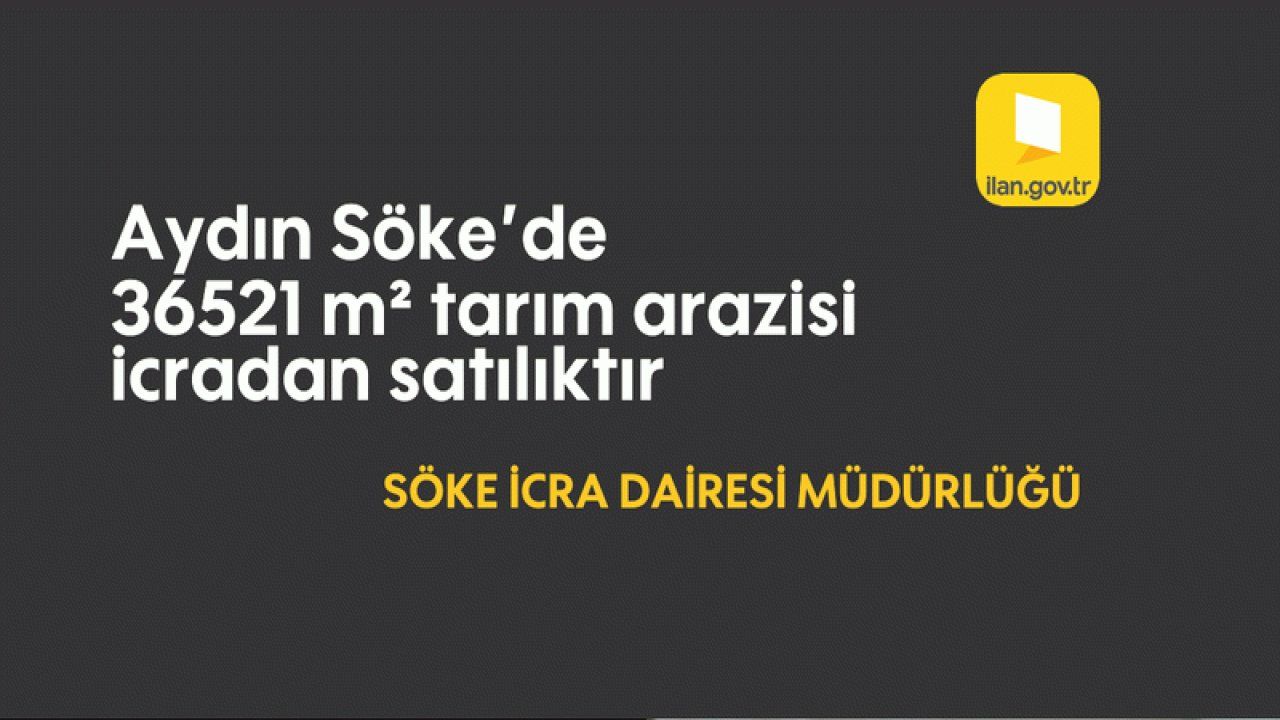 ilan.gov.tr'nin internet sitesinde yer alan ilana göre Aydın Söke'de 36521 m² tarım arazisi icradan satılıktır
