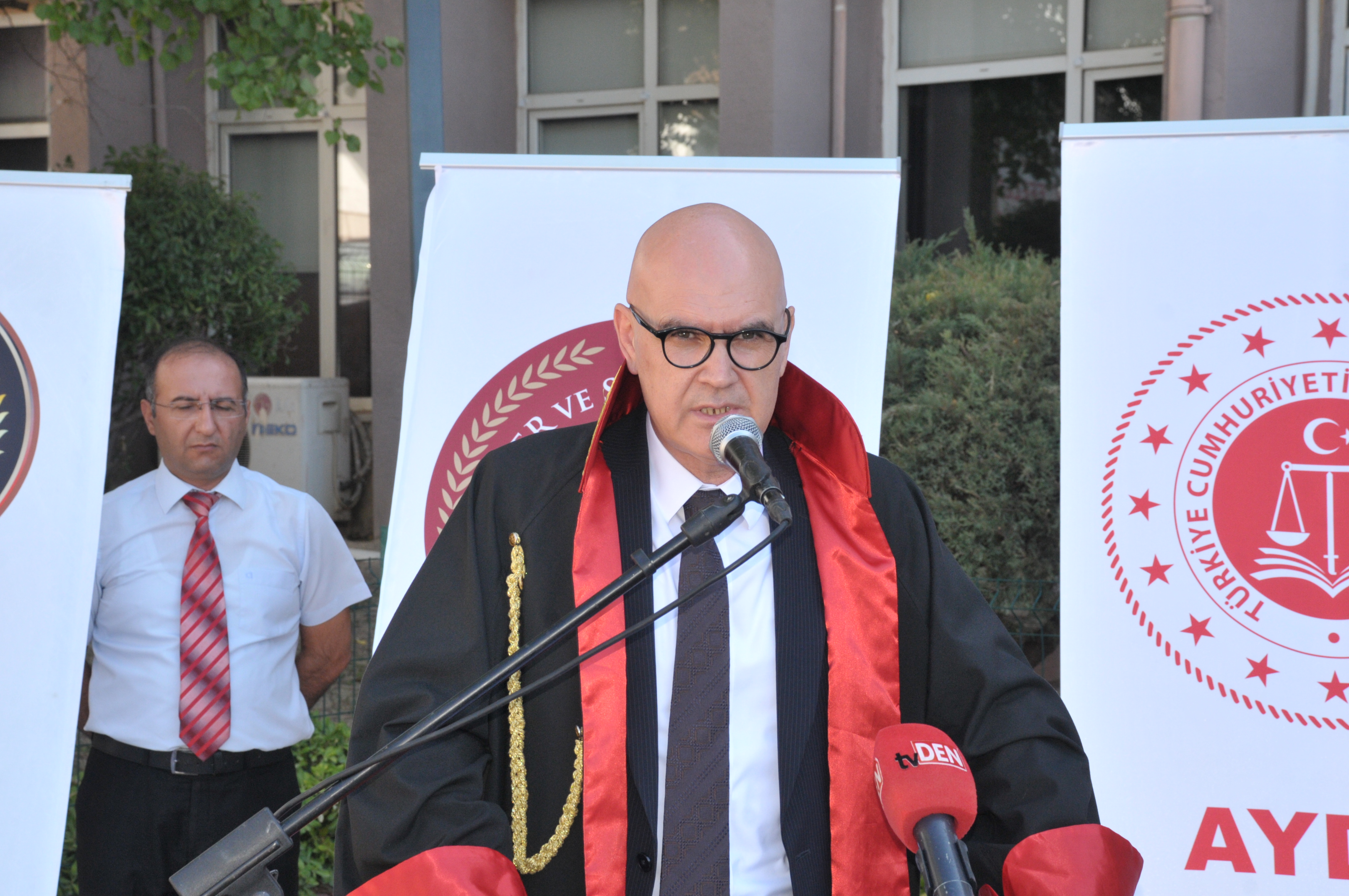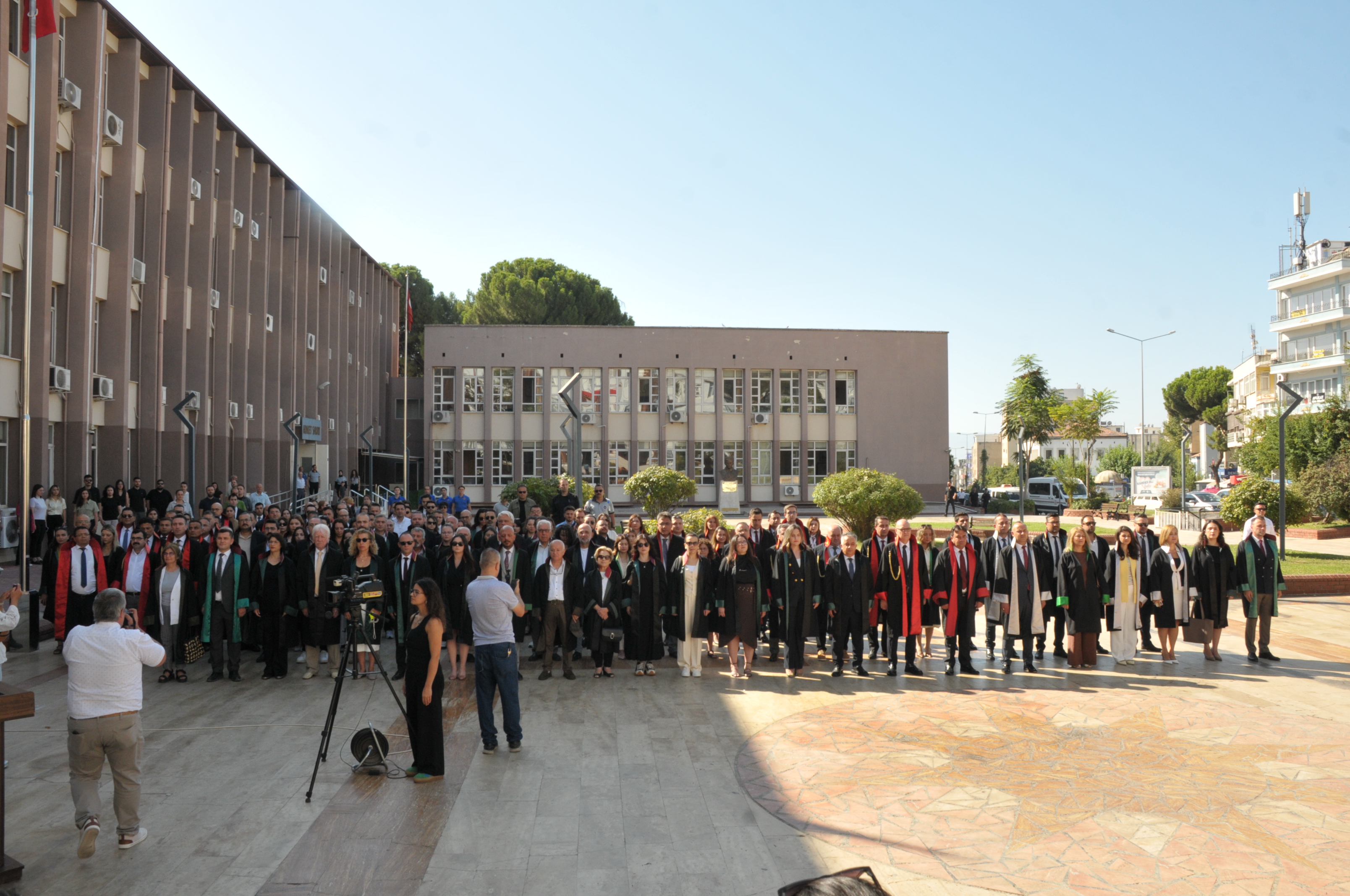 Törene Aydın Cumhuriyet Başsavcısı Celal Tekin, Aydın Adli Yargı Adalet Komisyonu Başkanı Önder Kürşat Mutlu, Aydın 1. İdare Mahkemesi Başkanı Ahmet Kılıç, Aydın Barosu Başkanı Utku Devrim Barış Arslan, mahkeme başkanları, hakimler, savcılar, avukatlar ve adliye personeli katıldı. Tören, Cumhuriyet Başsavcılığı, Adalet Komisyonu Başkanlığı, İdare Mahkemesi ve Aydın Barosu’nun çelenklerini Atatürk Anıtı’na sunmasıyla başladı. Saygı duruşu ve İstiklal Marşı’nın ardından açılış konuşmaları yapıldı.
