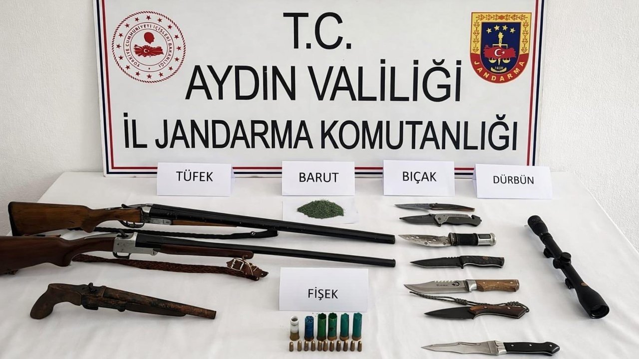Aydın İl Jandarma Komutanlığı Köşk İlçe Jandarma Komutanlığı ekiplerince yürütülen çalışmalar neticesinde H. K. (52) isimli şüphelinin Köşk ilçesi Ilıdağ Mahallesi'ndeki ikamet ve deposunda arama gerçekleştirildi. Aramada; 7 bıçak, 3 ruhsatsız yarı otomatik av tüfeği, 1 av tüfeği dürbünü, 10 gram barut, 6 adet av tüfeği fişeği ve 11 adet 9 mm mermi ele geçirildi. Olayla ilgili adli tahkikat başlatıldı.