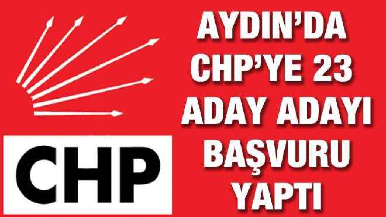 CHP Aydın’da da 14’ü erkek, 9’u kadın olmak üzere toplam 23 kişi milletvekili aday adaylığı için başvurdu. Başvuru yapan adaylar arasında mevcut milletvekilleri Bülent Tezcan ile Metin Lütfi Baydar da yer aldı.Ali Petek, Barkan Kalınomuz, Bayram İnci, Birnur Uçarlı, Bülent Tezcan, Emine Sandıklılı, Erdal Demir, Ferda Çağlar Erkut, Feyzullah Erkut, Fulya Üstündağ, Hüseyin Gündüz, Hüsniye Karsu, Kaan Erçetin, Kemal Güneri, Mehmet Fatih Atay, Metin Lütfi Baydar, Mustafa Arıkan, Nail Özazman, Nebahat Oskay Ürün, Nilüfer Ünüvar, Özlem Burcu Uğan Sevim, Serap Barlas ve Süleyman Bülbül, Aydın CHP'den başvuru yapan isimler oldu.