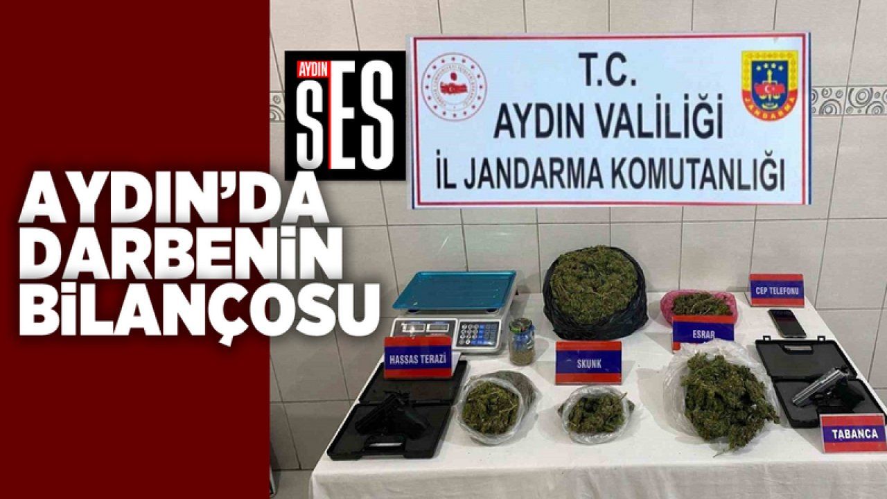 Aydın İl Jandarma Komutanlığı, KOM Şube Müdürlüğü koordinesinde İlçe Jandarma Komutanlığı ekiplerince uyuşturucu madde imal ve ticaretini yapan şahıslara yönelik koordineli çalışmada 31 şüpheli yakalandı. Yapılan aramalarda, 2 bin 600 gram skunk, 120 adet kenevir tohumu, 360 adet sentetik hap, 1 adet hassas terazi, 2 adet ruhsatsız tabanca, 2 adet ruhsatsız av tüfeği, 7 adet uyuşturucu kullanma aparatı/esrar öğütme aparatı, bir miktar kubar esrar ve metamfetamin ele geçirildi. Ayrıca operasyonda narkotik suçlardan hakkında aranma kararı bulunan 5, diğer suçlardan 6 şüpheli de yakalandı. Yakalanan şüpheliler hakkında adli sürecin devam ettiği öğrenildi.