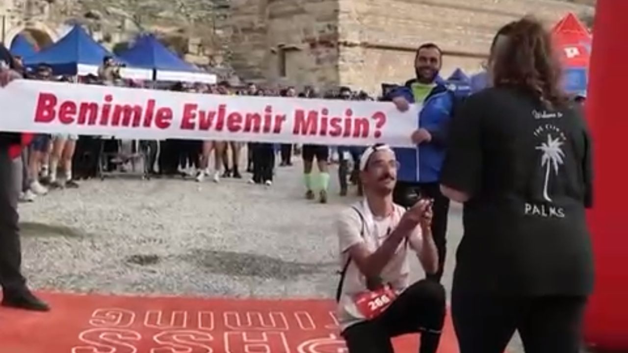 Yarışın en dikkat çekici anı ise erkekler 10 kilometre etabını tamamlayan bir sporcunun, 5 kilometrelik parkuru bitiren kız arkadaşını karşılamasıyla yaşandı. Genç sporcu, bitiş çizgisinde diz çökerek sevgilisine evlilik teklifinde bulundu. O anlarda arkadaşları da çiftin arkasında “Benimle evlenir misin?” yazılı pankart açarak romantik anı taçlandırdı.