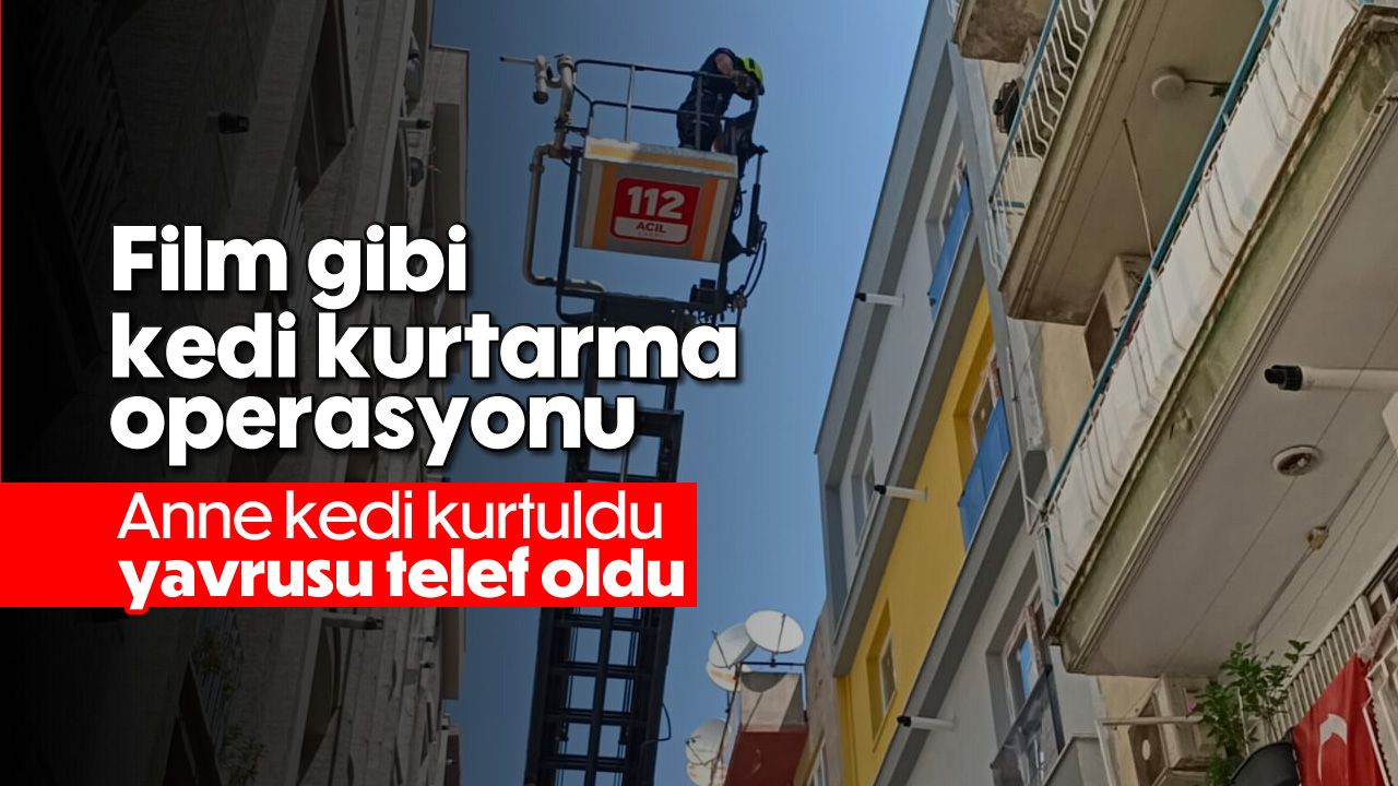 İtfaiye eri, uzatılan merdivenle kedinin bulunduğu balkona çıktı. Günlerdir aç susuz kalan kedi, itfaiye erinin kurtarmaya çalıştığı sırada bir anda ürkerek metrelerce yükseklikten balkonun tentesine düştü. Balkonda yavru kedi ise bulunamadı. İtfaiye eri, yangın merdiveniyle inerek bu kez tenteden kediyi almak istedi. Bitkin halde olmasına rağmen kedi son bir hamle ile itfaiye aracının üzerine sıçradı. İtfaiye ekipleri bir süre itfaiye aracında kediyi aradı. Kedi, etrafta toplanan vatandaşların şaşkın bakışları arasında gözden kayboldu. Kurtarılan kedinin yavrusunun ise 4’ncü kattan düşerek telef olduğu öğrenildi.