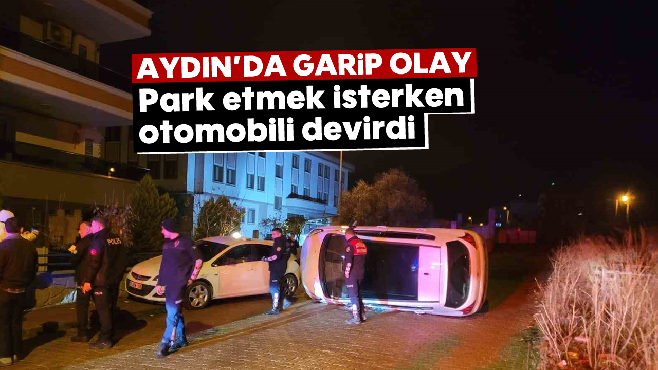 Aydın'da garip olay: Park etmek isterken otomobili devirdi