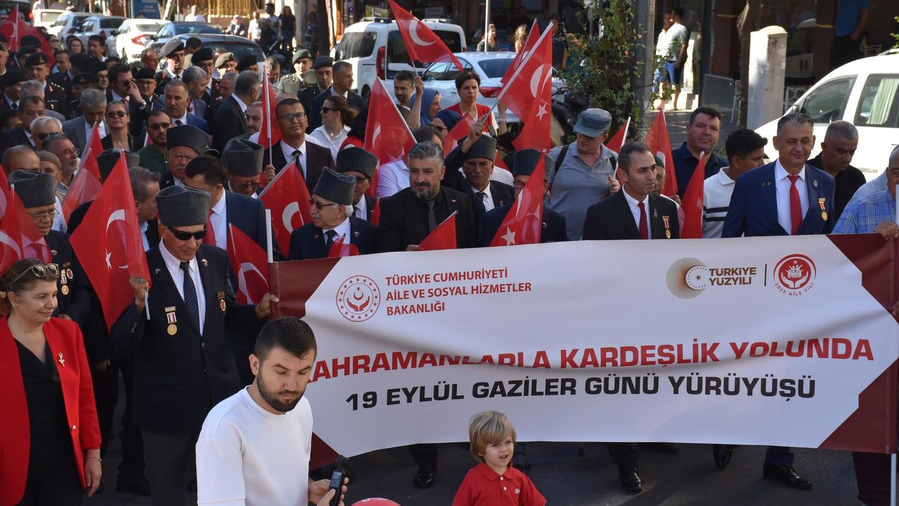 Aydın’da 19 Eylül Gaziler Günü, anlamlı bir kortej yürüyüşüyle kutlandı. “Kahramanlarla Kardeşlik Yolunda” mottosuyla düzenlenen yürüyüşe kıymetli gaziler, sivil toplum kuruluşlarının temsilcileri, kamu kurumlarının yöneticileri ve çok sayıda vatandaş katıldı. Gazilerin bayraklarla yürüdüğü kortej, hem birlik ve beraberliğin hem de minnet duygularının güçlü bir yansıması oldu.