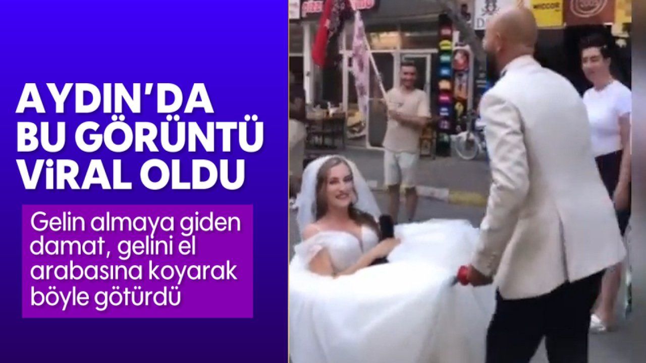 Aydın’ın Buharkent ilçesinde gelin almaya giden damat, gelini el arabasıyla alarak sosyal medyada gündem oldu.
