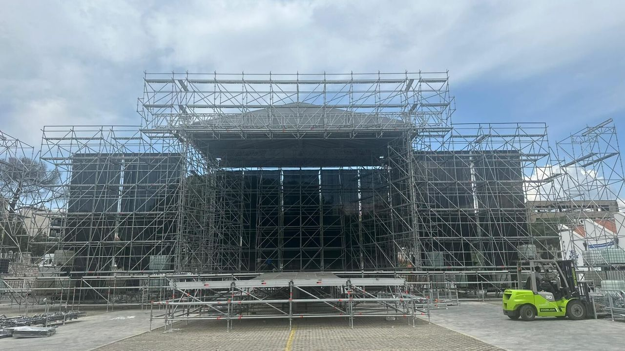 Konserlerin düzenleneceği Tekstil Park alanında dev sahnenin kurulumu başladı. Ekipler, binlerce müzikseveri ağırlayacak organizasyon için yoğun mesai harcarken, sahneyle birlikte ışık ve ses sistemlerine yönelik teknik çalışmalar da sürüyor.