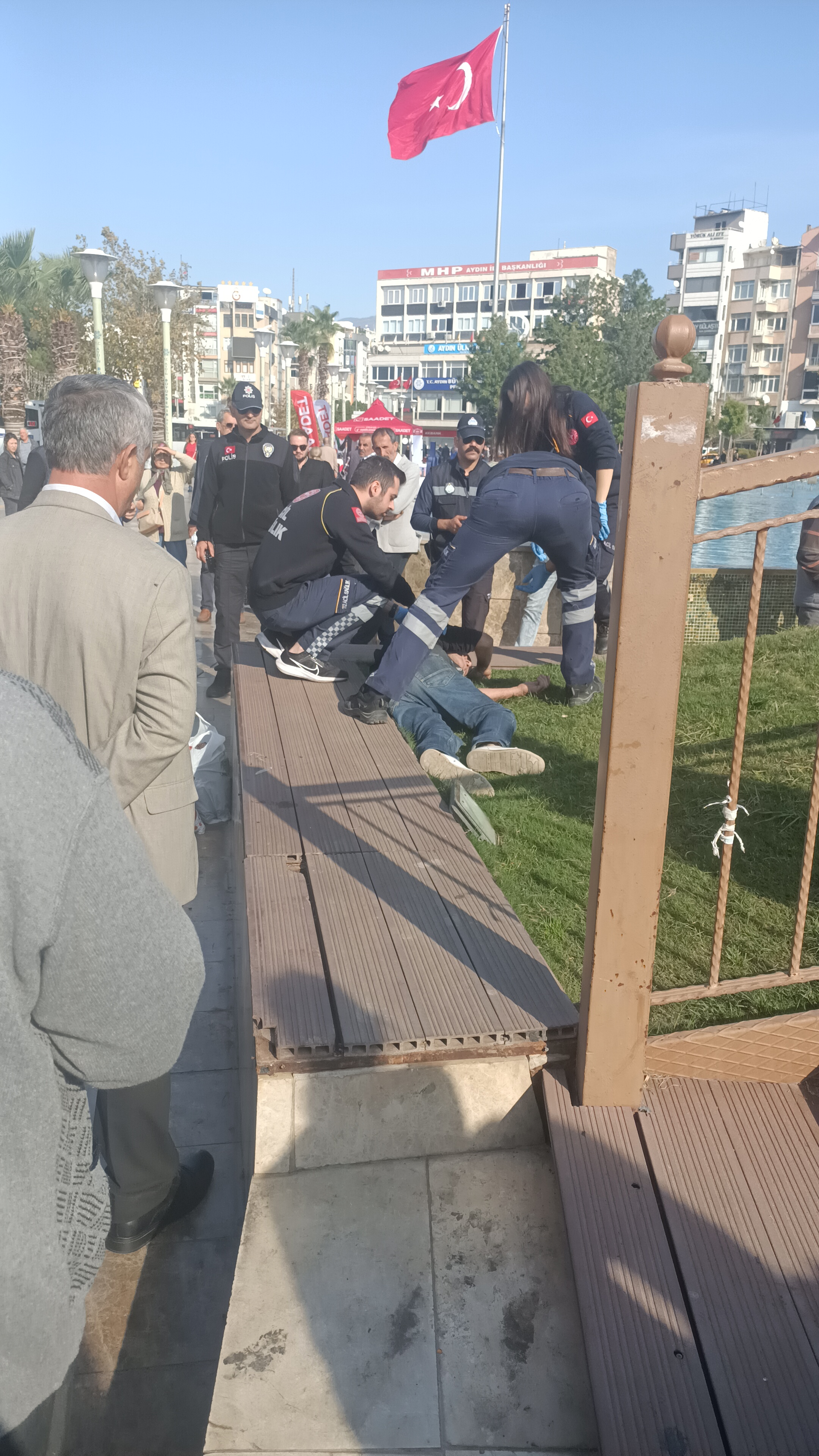 Efeler ilçesinde bulunan Atatürk Kent Meydanı’nda korku dolu bir an yaşandı. Bir vatandaş, bilinmeyen bir nedenle aniden fenalaşarak yere düştü. Olayın şokunu yaşayan çevredeki vatandaşlar harekete geçti. Yere düşen vatandaşa ilk müdahale çevredekiler tarafından yapıldı.