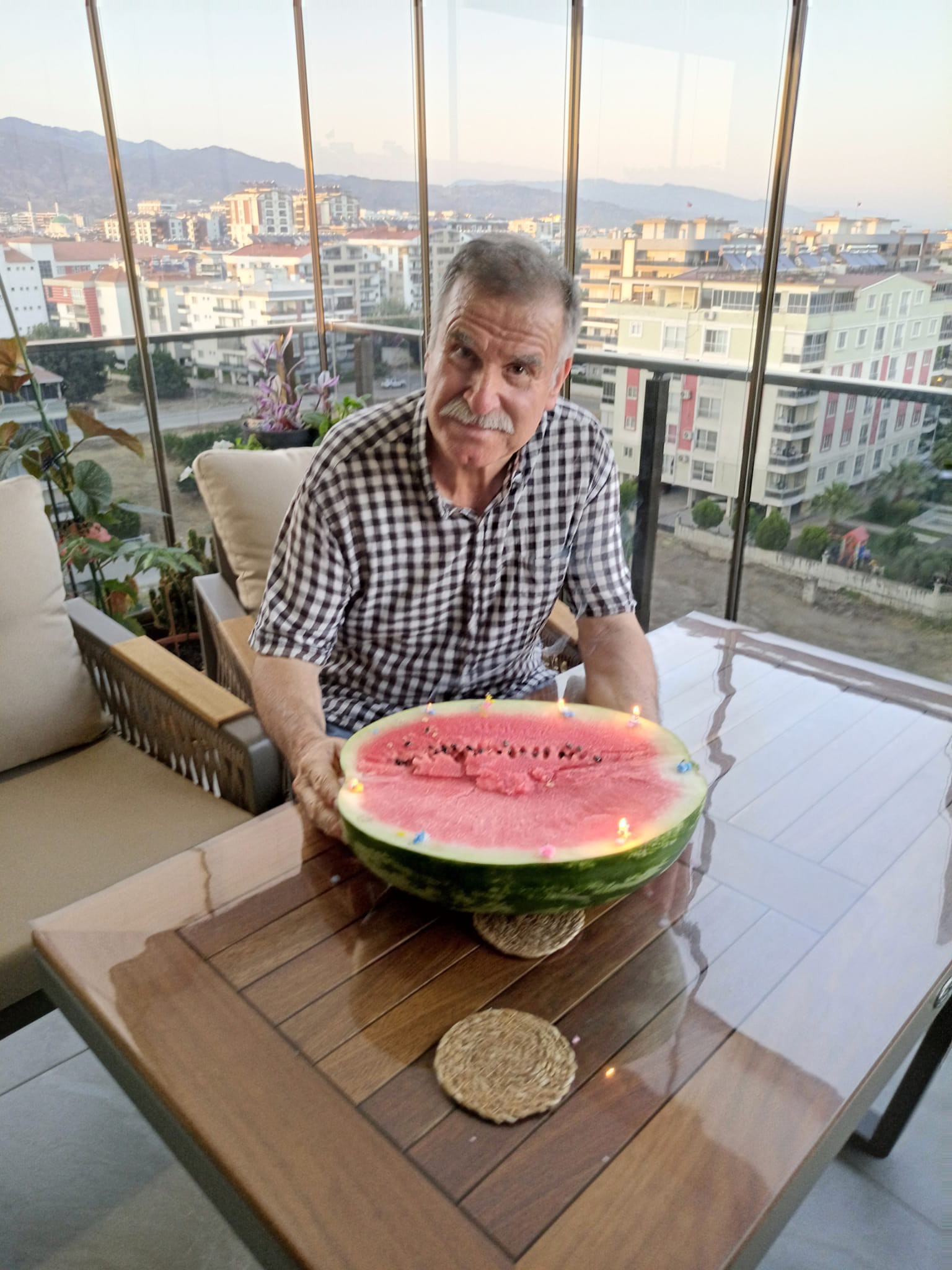 Aydın’da şair, söz yazarı, ressam, bestekar ve yorumcu Eşref Gülpınar, doğum günü kutlamasıyla kentin meşhur ürünü Cincin karpuzuna sahip çıktı. Bugüne kadar Aydın’ın tanıtımına yönelik birçok çalışma üreten Gülpınar, 68’inci yaş gününü pasta yerine Cincin karpuzuyla kutladı.