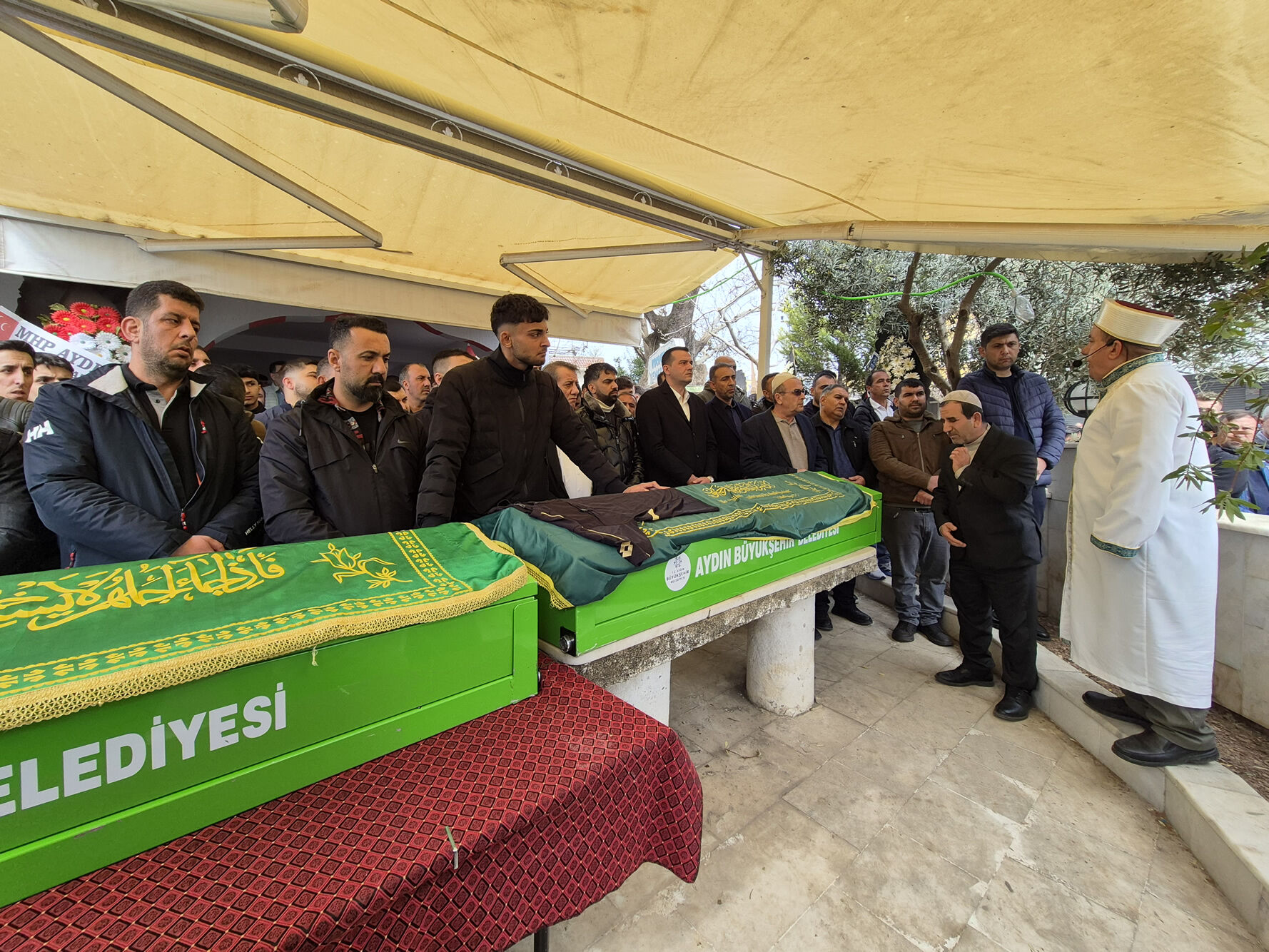 Fırıncı esnafı olan yıllarca kentte futbol hakemliği de yapan Erhan Özlüer ve kardeşi Ayhan Özlüer için Efeler ilçesindeki Kemer Koca Çınar Cami'nde tören düzenlendi. Öğle namazına müteakip düzenlenen törende cami avlusu dolup taştı. Cenaze törenine AK Parti Aydn Milletvekili Ömer Özmen, Efeler Belediye Başkanı Anıl Yetişkin, MHP Aydın İl Başkanı Osman Gazi Cihangiroğlu, MHP Aydın eski il başkanı Burak Pehlivan, Aydın Büyükşehir Belediyespor Futbol Şube Sorumlusu ve Aydın Amatör Spor Kulüpleri Federasyonu Başkan adayı Ömer Altuntaş, Aydın İl Hakem Kurulu Başkanı Murat Altuntaş, Özlüer ailesi, yakınları, esnaf ve spor camiasından çok sayıda vatandaş katıldı. Özlüer'in tabutunun üzerine hakem forması konuldu. Kılınan cenaze namazının ardından Özlüer kardeşler gözyaşları arasında Kemer Mezarlığı'nda toprağa verildi. Törende Özlüer ailesinin feryatları yürekleri yaktı.