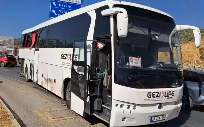 Kavşakta gezi otobüsü ile kamyon çarpışırken çarpışmanın şiddetiyle çevre adeta savaş alanına döndü.