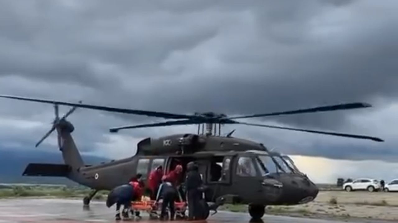 Zorlu hava ve arazi şartları nedeniyle karadan ulaşım sağlanamayınca, İl Jandarma Komutanlığı’na ait helikopter devreye girdi.