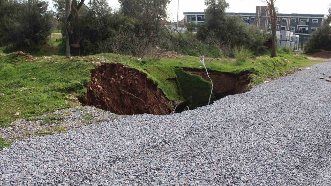 Aydın genelinde etkili olan sağanak yağışlar sonrasında birçok bölgede su baskınları yaşanırken, bazı bölgelerde de çöküntüler meydana geldi.