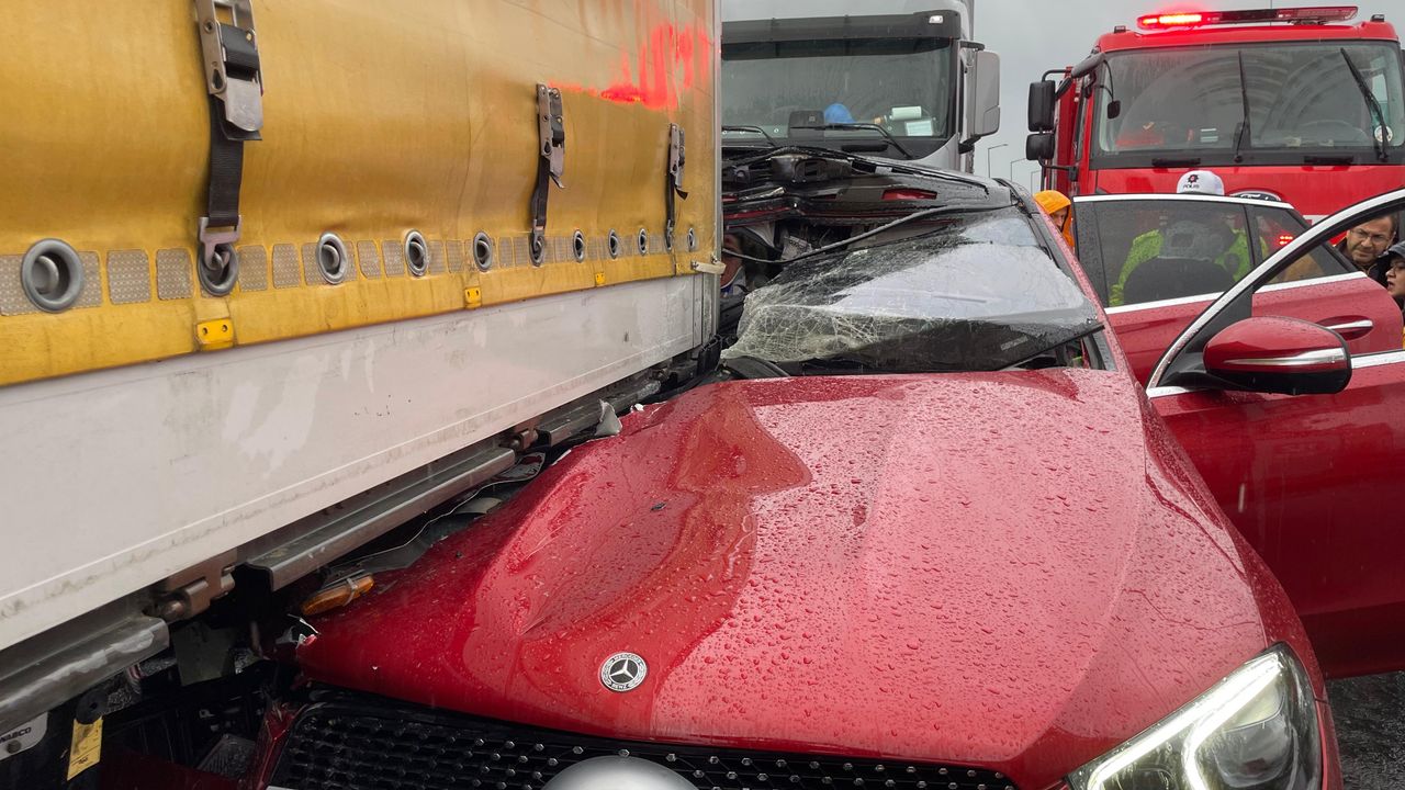 Çarpmanın şiddetiyle otomobil tıra adeta ok gibi saplandı. Kazayı gören sürücülerin ihbarı üzerine olay yerine polis, sağlık ve itfaiye ekipleri sevk edildi. Otoyolda kısa süreli trafik yoğunluğu oluştu.