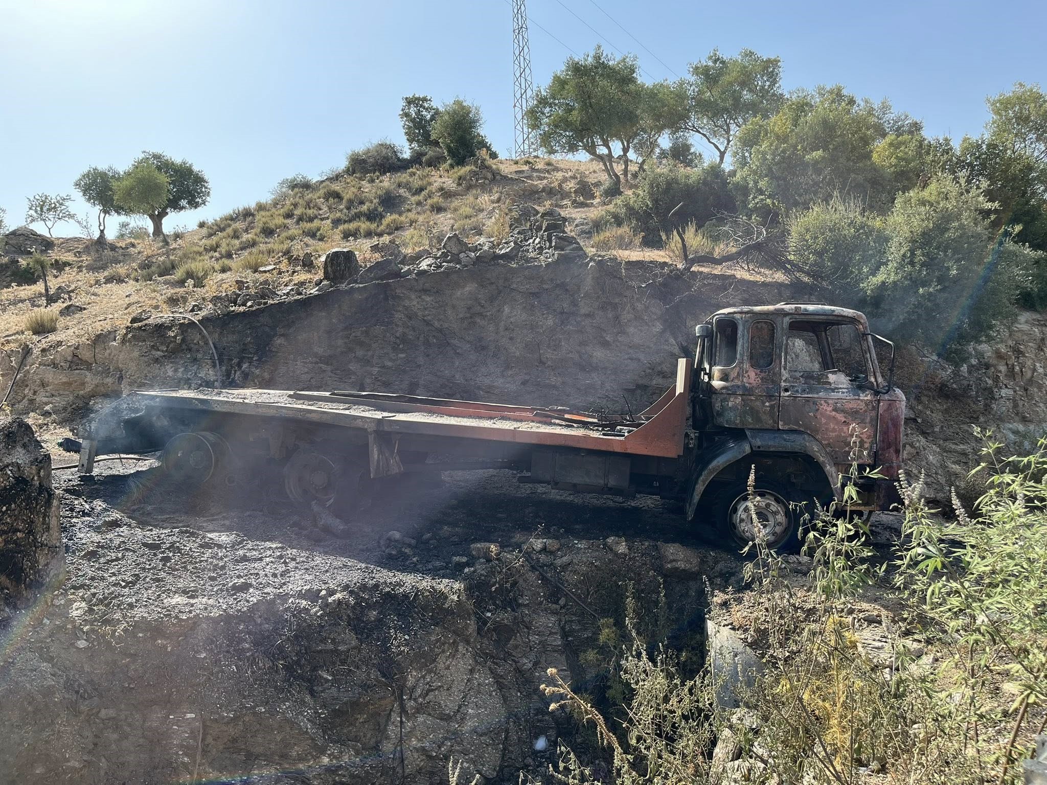 Bölgeye gelen itfaiye ekipleri yanmakta olan kamyonu su tutarak söndürüp yangın çevreye sıçramaması için de tedbir aldı.