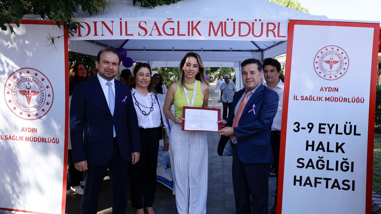 Etkinlik alanını ziyaret eden Aydın Vali Yardımcısı Kamuran Mustafa Ballı ve İl Sağlık Müdürü Dr. Eser Şenkul, sağlık personelinden yürütülen çalışmalar hakkında bilgi aldı. Vatandaşlarla sohbet eden protokol üyeleri, sağlıklı yaşamın önemine dikkat çekti. Etkinlik kapsamında, sigara bırakma polikliniğinde görev yapan ve yüksek başarı oranına sahip hekimlere, ayrıca sigara bağımlılığından kurtulan vatandaşlara “Koruyan Geliştiren Sağlık” anlayışına katkılarından dolayı teşekkür belgeleri takdim edildi.