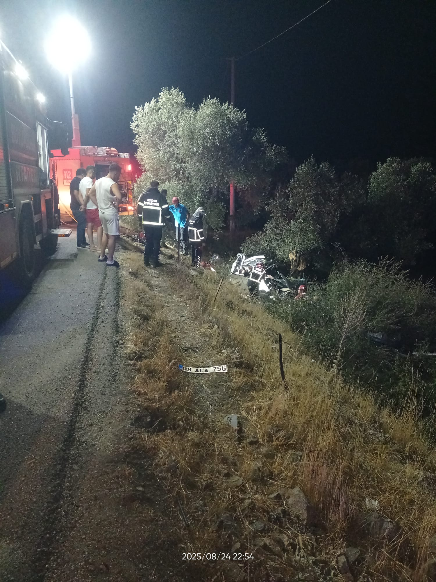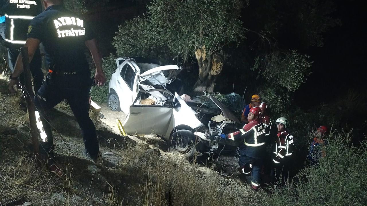 İhbar üzerine olay yerine sağlık, jandarma, polis ve itfaiye ekipleri sevk edildi. Zeytin ağacına çarparak durabilen otomobilde sürücü Melek Özdağlar ve yolcu Sibel Beyhan Toprak (41) sıkıştıkları araç içinde hayatını kaybetti.